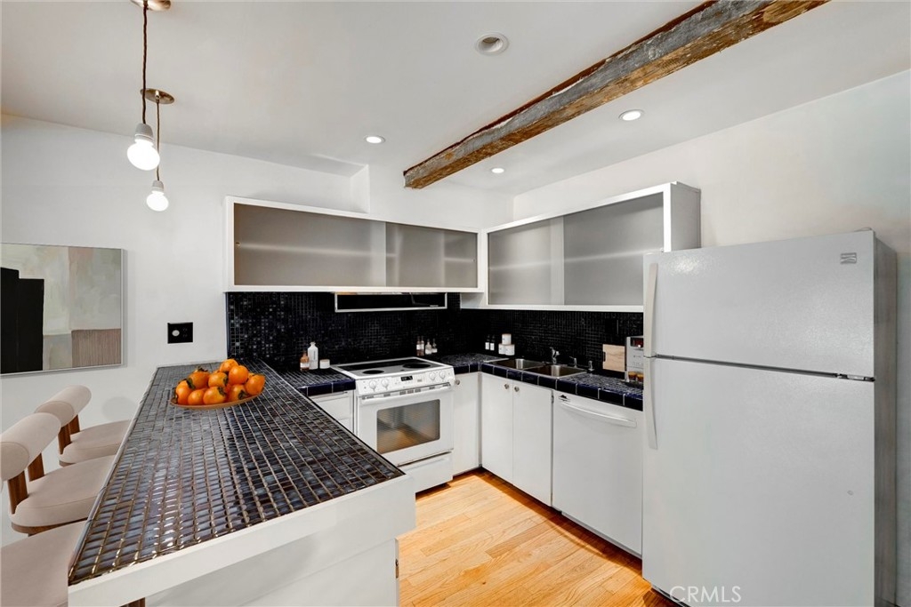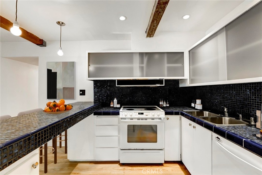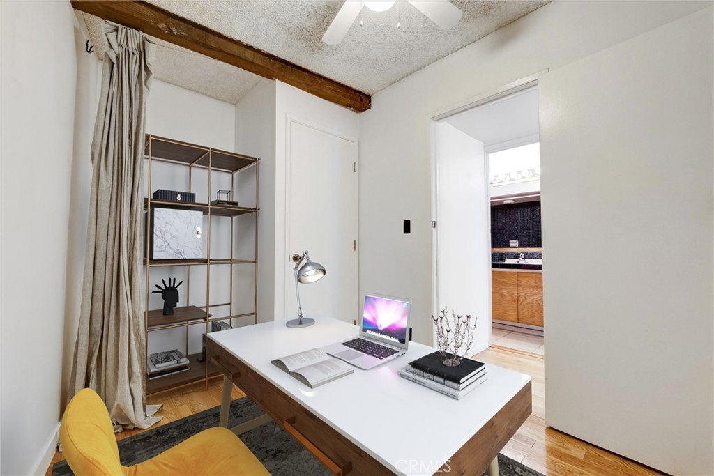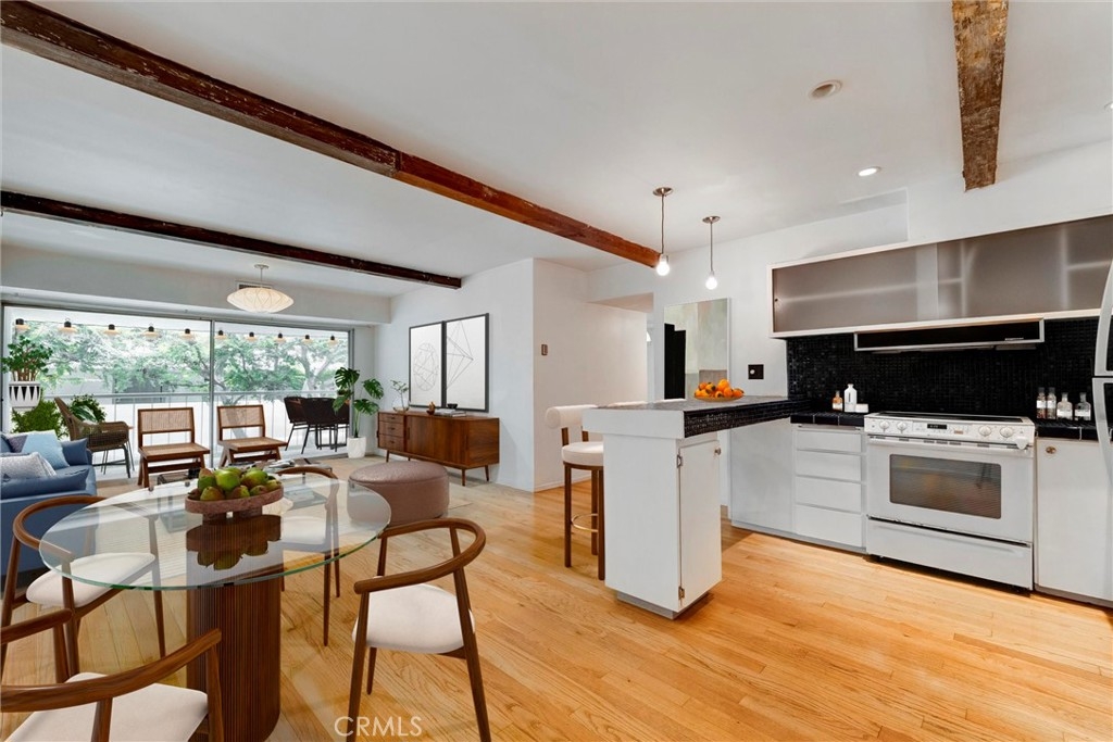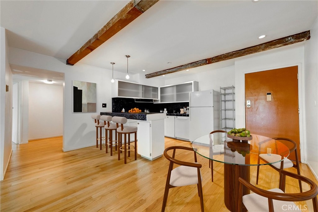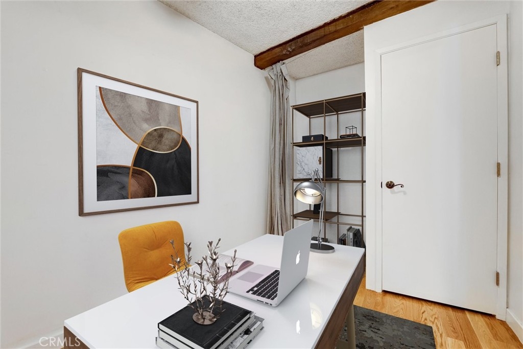 This is your chance to own a condo in the coveted Lago Vista complex, designed by Allyn E. Morris circa 1973! A rare architectural gem, this open floor plan 2 bedroom + bonus room condo (see remarks) is a tranquil oasis in the middle of the city. Living room with exposed beams recalls the original mid-century design. Kitchen with beautifully maintained original tile counters and backsplash is eye-catching. Balcony large enough for lounging and al fresco dining. Two well sized bedrooms, plus an additional room that can be a third bedroom or office (see remarks). Quiet location in the back of the building with serene tree top views. The owners preserved the original features, sourcing Hansgrohe faucets, bakelite switch-plates, and more. Private pool and lounge area with mid-century vibes looks like it is straight out of a Slim Aarons photograph. Two assigned parking spaces with close access to the unit. The location is a star with the best of Echo Park, Silver Lake, and Sunset Junction a minute away. Own a piece of architectural history at Lago Vista.