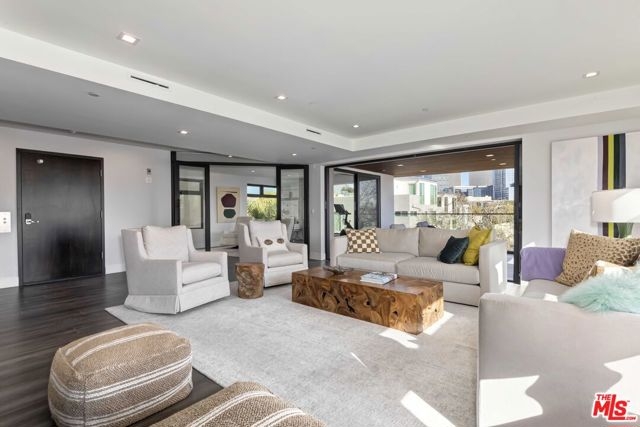 Set within a luxurious four-residence building, this bespoke contemporary home offers nearly 3,000 SF of refined living on its own floor with no shared walls. Guests are welcomed into the residence via a direct-access elevator. The grand, light-filled great room is anchored by wide-plank hardwood floors and expansive glass doors that seamlessly open to a generous terrace with captivating eastern views toward Century City. Designed for both everyday comfort and sophisticated entertaining, the layout includes a spacious living area and a glass-enclosed office. The impressive chef's kitchen boasts professional-grade Wolf appliances, a Sub-Zero refrigerator, dual ovens, a 60-bottle wine fridge, an oversized island with bar seating, and custom cabinetry. A charming dining area sits adjacent, perfect for intimate dinners or festive gatherings. The bedroom wing hosts the stately primary suite featuring a double-sided fireplace, an expansive walk-in closet, and a spa-like bath appointed with floating dual vanities, a freestanding soaking tub, and an oversized glass shower. Additional highlights include a stylish powder room, side-by-side laundry, abundant storage, and dual-zone HVAC. Perfectly positioned moments from the Century City, Beverly Hills dining and boutiques, and world-class golf at LACC and Rancho Park. This move-in-ready residence delivers elevated living at its finest - offering privacy, scale, and style without the upkeep of a single-family home.