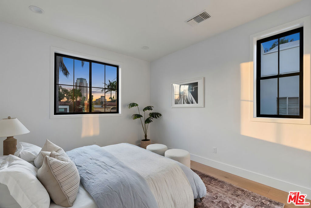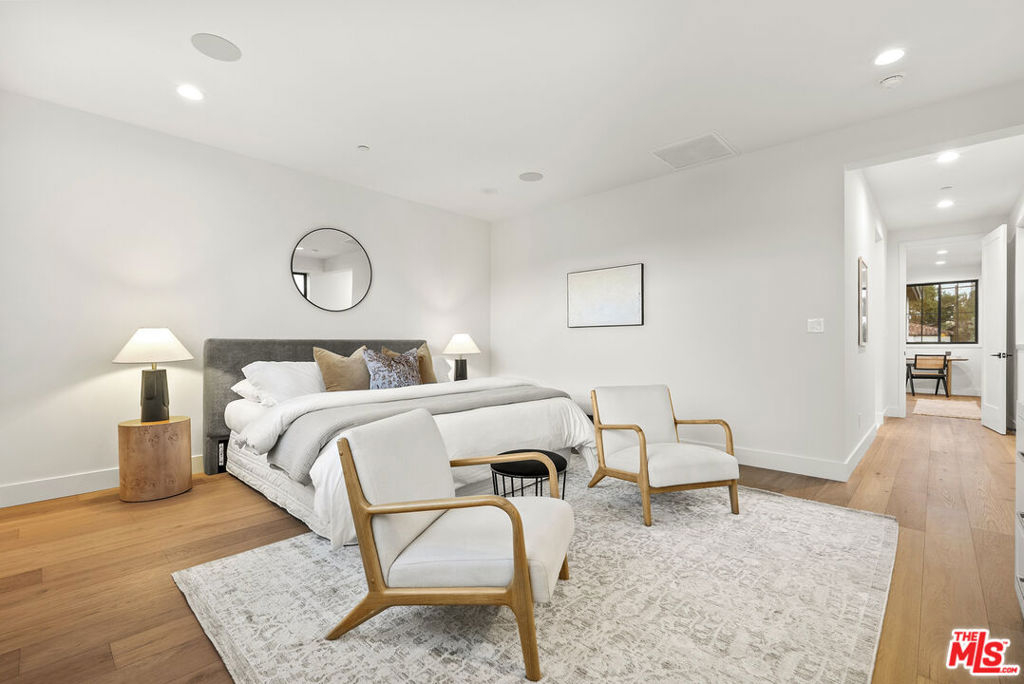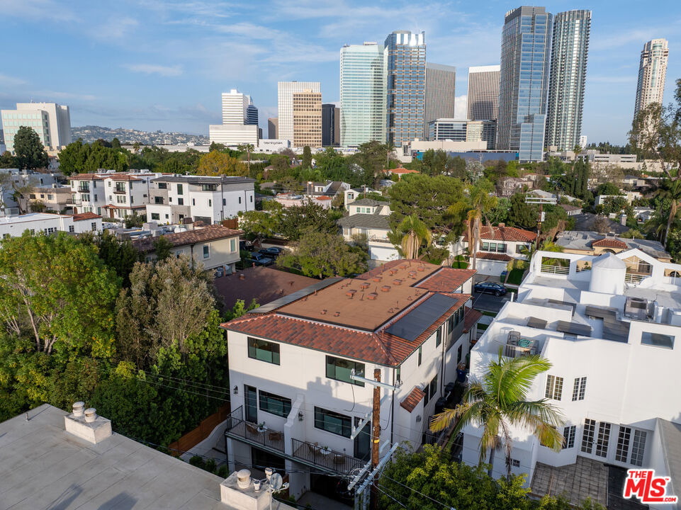 Welcome to Villa Benecia, Spanish for "the blessed one." This stunning, brand-new 2026 Thomas James Homes (a national leader in high-quality residences) modern Spanish-style townhouse condominium built with quality craftsmanship, never lived in, features an elevator, attached garage, and an exceptional location in the highly sought-after Century Glen neighborhood. Ideally located just west of Westfield Century City and east of Beverly Glen, the home is blocks to fine dining, shopping, fitness centers, and more. Positioned on a hilltop, the residence offers beautiful views of the Century City skyline. Enter from the attached garage or through the formal covered front door into a dramatic entry hallway with high ceilings and warm hardwood floors. The main level features an open-concept dream kitchen with Wolf and Sub Zero appliances, a large center island seating up to six, a spacious living room with gas fireplace, and a generous balcony overlooking the private yard below. This level also includes a powder room and elevator access to all three floors. The top floor offers a luxurious primary suite and a guest bedroom, both with en-suite bathrooms, along with a laundry room and a flexible landing area ideal for a desk or seating nook with Century City views. The primary suite boasts abundant natural light, views of the Wilshire Corridor skyline, a walk-in closet, and a spa-like bathroom with expansive vanities, a large shower, and a freestanding soaking tub. The guest bedroom features ample closet space, a well-appointed en-suite bath, and stunning skyline views. The lower level, adjacent to the private backyard, provides an expansive open space ideal for a second guest suite, screening room, or entertainment area, complete with an en-suite bathroom. Rare offering with New Solar Panels on Roof. One of only two units available.