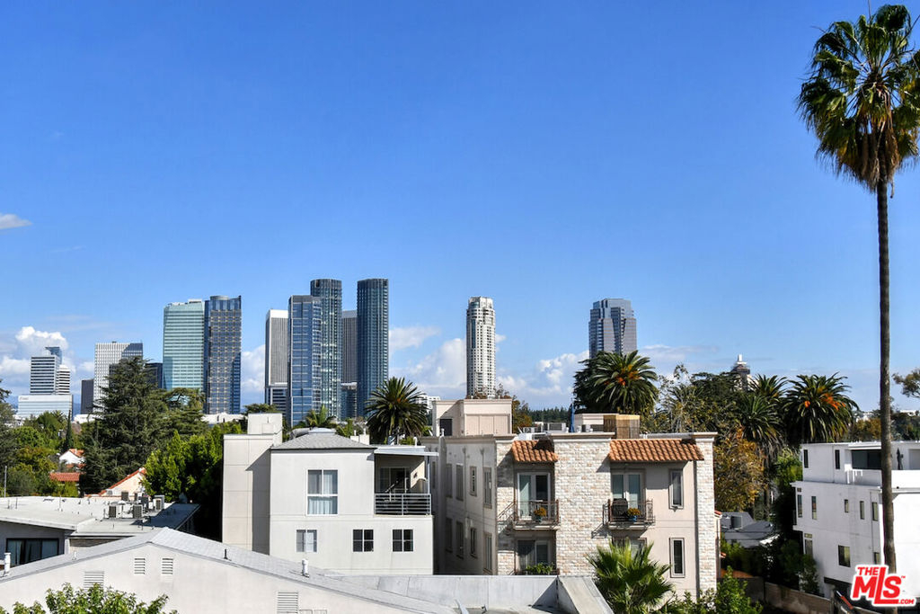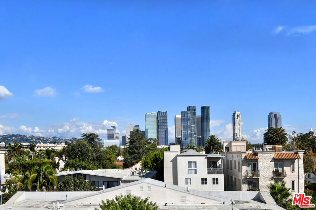 Experience luxury penthouse living in a boutique six-unit building in the highly coveted Westwood / Century City area of prime West Los Angeles. This elegant residence provides approximately 2,000 sq ft with three bedrooms, three bathrooms, a versatile den/family room, and an upstairs loft/office that serves as the third bedroom. Soaring 18 ft ceilings, classic wood floors, plantation shutters, and abundant natural light create a welcoming atmosphere throughout. The gourmet kitchen features a spacious breakfast bar and extensive cabinetry, while the grand living room offers a stone fireplace and dining space opening to a private balcony. Enjoy entertaining in the den/family room complete with wet bar, or retreat to the luxurious primary suite with rear balcony access, city light views, spa-like ensuite bathroom, double vanity, soaking tub, walk-in closet, and two additional closets. The secondary bedroom and bath are generous on the main level, and the flexible loft/office (third bedroom) upstairs has its own full bath. A truly spectacular private rooftop deck enhances the home, providing sweeping city and mountain views, multiple seating areas, and an ideal setting for indoor/outdoor, year-round California living perfect for entertaining, relaxing, and savoring every season. Additional amenities include private laundry, two parking spaces, and a dedicated storage unit. Located in the award-winning Westwood Charter School district, this home is moments from vibrant cafes, dining, premier Century City shopping, UCLA, the Google Campus, and freeway access.