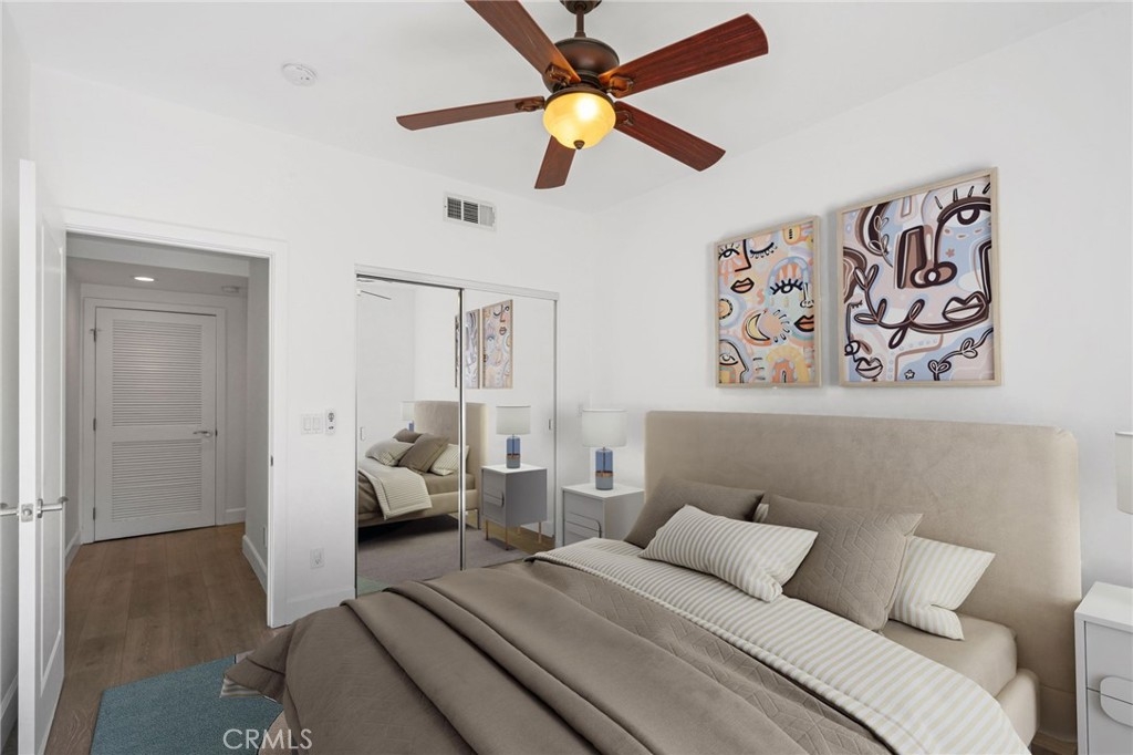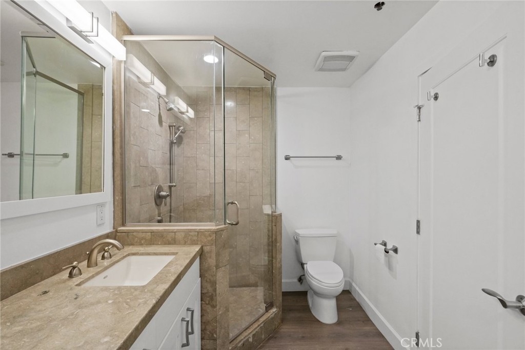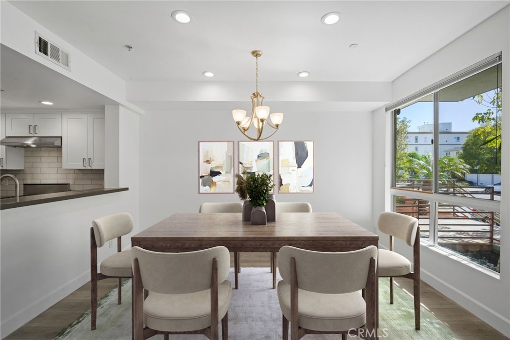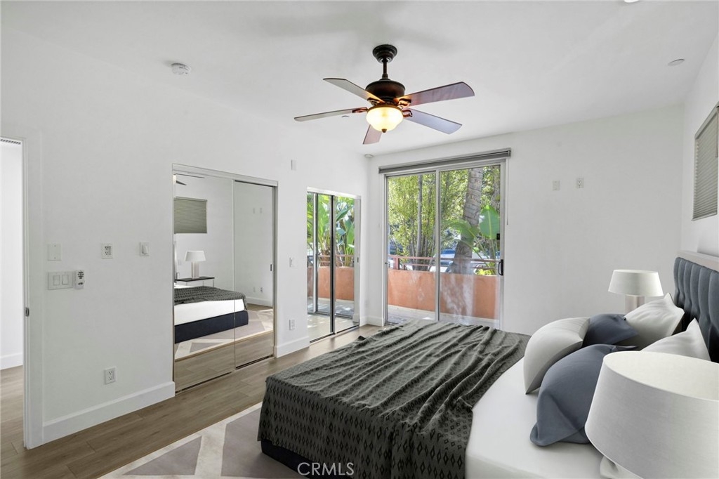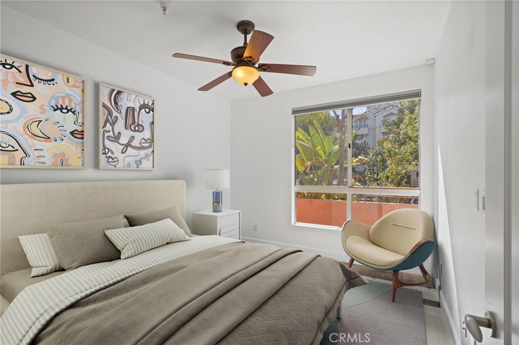 WELCOME TO THE GLEN TERRACE! This Luxurious 2 Bed | 2 Bath condo with open floor plan is ready for you to call home. As you enter, you are welcomed to the grand foyer with high ceilings, you will immediately notice the gleaming laminate flooring and natural light flow throughout the home's open, airy layout. The large living room with balcony is ideal when entertaining guests. The inviting top-of-the-line gourmet kitchen is clad with premium finishes including Caesar-stone countertops, custom white cabinetry, Mosaic glass backsplash, Jenn-Air stainless range, refrigerator, microwave, dishwasher and a breakfast bar that opens up to the dining area. Two bedrooms which include a Primary en-suite with dual sliding mirrored door closets with built-ins, a Primary Bath with dual sinks, natural stone counters, large soaking tub and a separate walk-in shower. Other features include Washer, dryer in unit, the unit is pre-wired for an alarm and CAT-5 ethernet in each room. Glen Terrace HOA covers water and trash. Secured underground parking with EV fast charge outlet (240 volt) in stall (2 tandem spaces). Guest parking spots available and storage room in garage. Walking distance to Westfield Century City Mall, offices, shops and restaurants. Minutes from UCLA. Westwood Charter School district. The unit has been virtually staged with furniture.