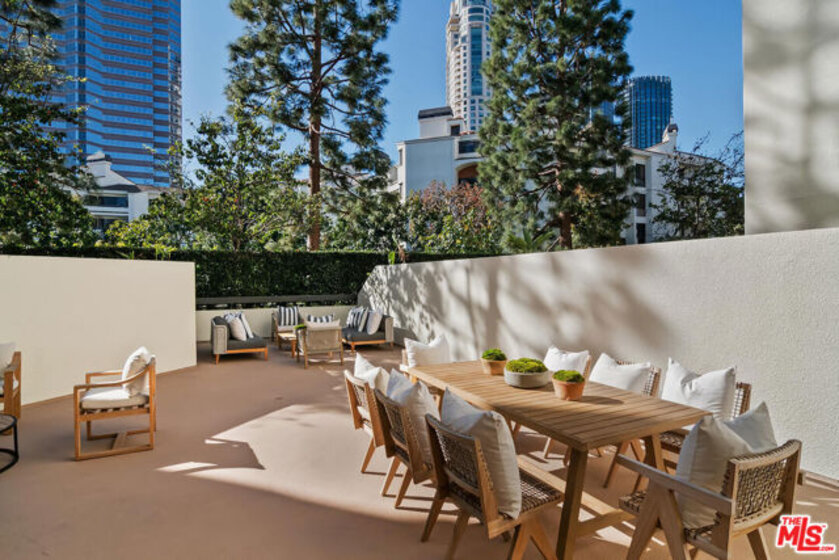 Welcome to this rare offering at Century Park Place! 2Br 2Ba quiet interior unit overlooking beautiful greenery, landscaped grounds and city lights beyond. The enormous outdoor patio is accessible from the living room and both bedrooms making it perfect for sipping your morning coffee, afternoon gatherings with family and friends or romantic al fresco dining under the stars. The floorplan offers an ideal flow, with a formal entryway, living room with corner fireplace and sliding glass doors leading out to the astounding outdoor space. The bedrooms are separated on either side of the unit, providing privacy and flexibility. The kitchen boasts a breakfast area with a large window overlooking the atrium with fountain, plenty of cabinet space and new appliances. The open dining area leads to the living room & patio, making it perfect for entertaining. The primary suite is bright and spacious with walk-in closet, recessed lighting and double sinks. The guest bedroom with walk-in closet has an additional wall closet and full bathroom. There is a full sized washer and dryer in the unit as well. All of this private outdoor indoor space in a secure peaceful environment in the middle of bustling Century City, conveniently located close to award winning Century City mall with world class shops, restaurants and entertainment! Park Place amenities can't be beat! Come spoil yourself with 24/7 guard gated and roaming security, on-site management, club room, and each building has a separate fitness center. There are 3 pools, 3 tennis courts, basketball/sports court and 2 pickleball courts! HOA fee includes Internet and Entertainment package, professional management, earthquake insurance, water and gas. The unit has side by side parking with generous storage bins and there is an abundance of guest parking. Be sure to visit the website for 3D Tour!