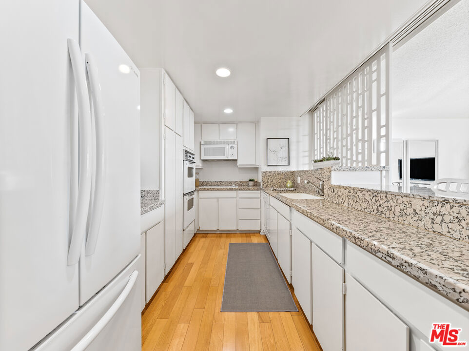 Large 1 bedroom, 1 bathroom condominium on the 10th floor in Century Park East -- a true Mid-Century 'Towers in the Park' resort-style community in the heart of Century City, moments from all. Rarely available, offering NO common walls and City views, and located in the desirable South Tower. Features: spacious kitchen with double ovens, stone counters and breakfast bar providing for either a full open concept kitchen/living room/dining area or a discrete kitchen space via moveable wall screens, in either case, perfect for entertaining. A large bedroom suite with 3 closets, including a walk-in, superb natural light from SW facing windows with views and bathroom with separate tub, shower and water closet. This sought-after community offers an array of amenities which include: 24-hour valet parking and security, doormen, Olympic sized swimming pool and sun deck, tennis court, state of the art fitness center, lush park like grounds with dog park, beautiful lobby and public spaces, onsite manager and in-house engineering services. HOA dues are $880/mth and include: building amenities, water/sewer/trash, central heat/air, community laundry room, extra storage and 1 parking space. Located close to Fox Studios and Westfield Century City mall with shops, movies, dining, markets and hotels. Only minutes to Beverly Hills, Westwood & UCLA.