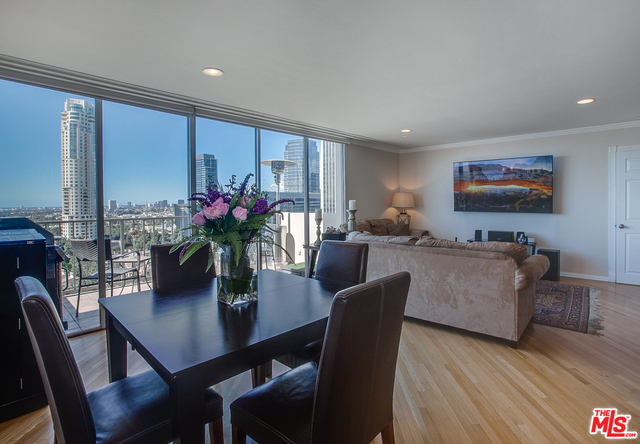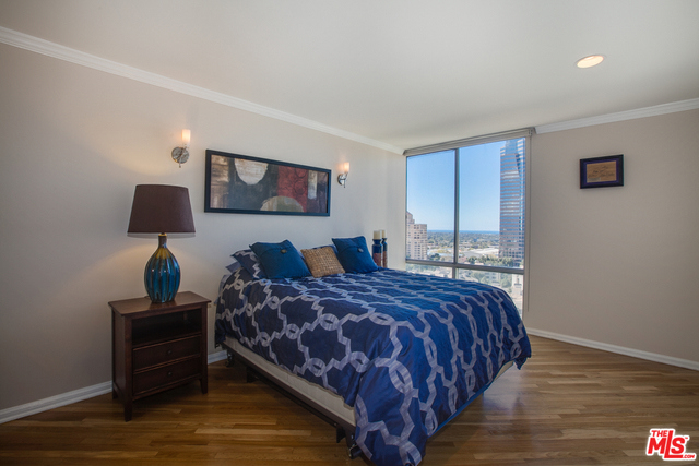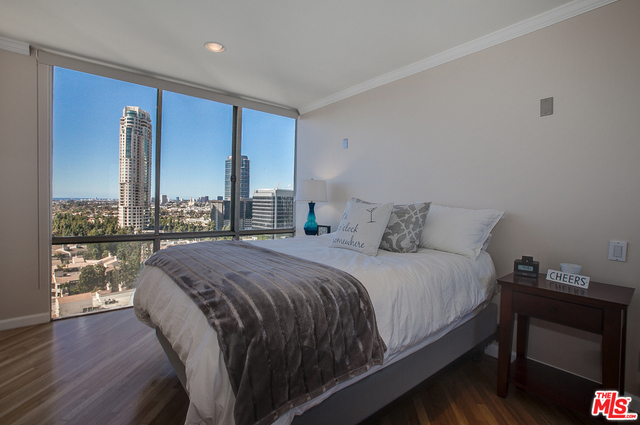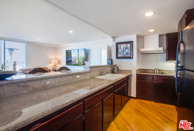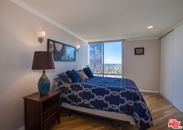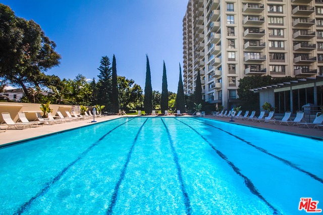 For Appraisal use: Buyer assumed the substantial A/c retrofit which is not included in purchase price. 2 bedroom with skyline and twinkling light views westward to the ocean. Enjoy the convenience of valet parking and security and ease which comes with a doorman building. Excellent layout with bedrooms on opposite sides of the unit and open kitchen with Balinese style cabinets and granite countertops. Freshly painted and recently redone hardwood floors throughout, both marble baths are spacious and luxurious. Have morning coffee on the balcony, then hit the gym on the first floor for a convenient workout just seconds from home or do laps in the crystal clear Olympic size pool. This conveniently located, sunny and bright unit is pet-friendly and offers an unbeatable value. Shown only by appointment.