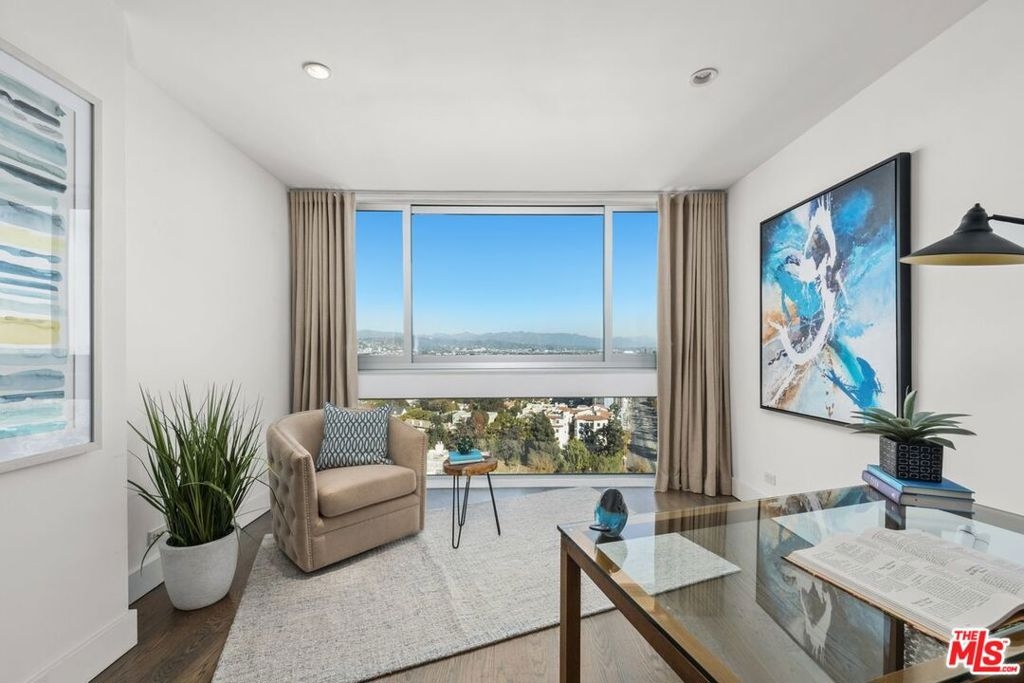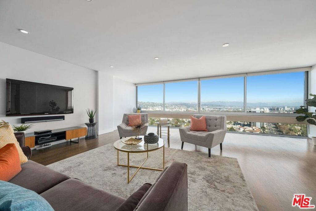 Gorgeous remodeled 2 bedroom, 2 bathroom condo in the prestigious I.M. Pei architectural building Century Towers with unobstructed views from the Hollywood Hills to Downtown, Beverly Hills and Century City. All windows double-pane. Newer renovation with lovely hardwood floors and recessed lighting throughout. Custom designed kitchen with Viking appliances, soft-closing drawers, glass tile splash-back and breakfast bar. Hook up in the unit for washer and dryer. The second bedroom has custom built-in shelving so could be used as an office. Master has a large walk-in closet and a beautifully updated bathroom with a huge shower and glass features. Guard gated community with 24-concierge, valet parking, pool, tennis courts, fitness center and electric car-charging stations.