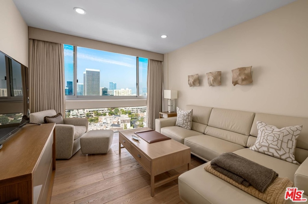 This home has been masterfully remodeled with designer finishes throughout. Imagine a perfectly appointed luxury 5 Star suite. A wide-open 'great' room seamlessly connects to the kitchen, complete with stainless steel Viking appliances and Calacatta marble countertops. Walker Zanger tile and wood flooring flow throughout. Both bedrooms are ample in size and storage. The primary suite, enhanced with an acoustically reinforced wall for additional privacy, has a walk-in closet and spa-like bathroom. This is a full-service, guard-gated compound designed by world-renowned I.M. Pei. Services include a 24-hour doorman, valet, swimming pool, tennis courts and a well-equipped gym all in a meticulously manicured setting. Close proximity to all that Century City has to offer.