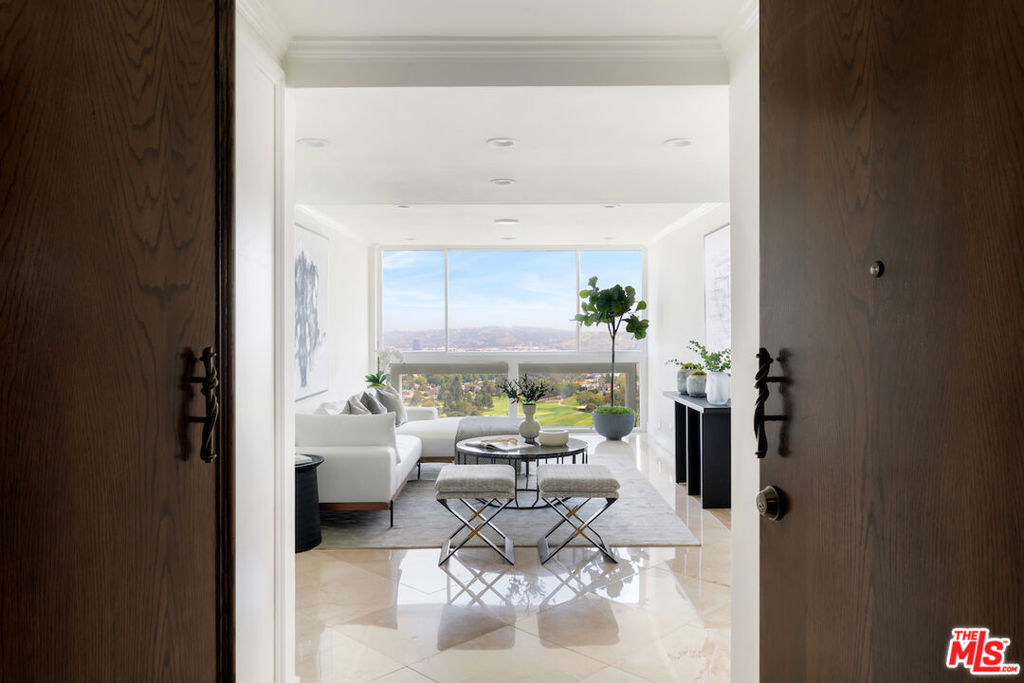 Rare corner unit on the 24th floor in the highly desirable Century Towers in the heart of Century City with panoramic views of the city, ocean, mountains, and Hillcrest Country Club golf courses. This meticulously remodeled unit features marble and hardwood floors throughout, custom closets, recessed lighting, and top of the line appliances. Grand double doors enter into the dramatic sitting room with floor to ceiling windows leading into the open concept living, dining and kitchen. Two spacious bedrooms with equally exquisite views complete this nearly 1,700 sqft home. This 24 hour full-service building includes guarded entry, doormen, valet parking, tennis courts, fitness center, sauna, outdoor swimming pool, and immature manicured grounds.