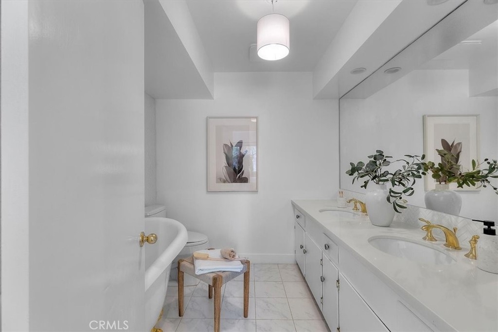 Discover this beautifully spacious townhome in the heart of Brentwood Village, set within a stunning 5-acre resort-style community. Surrounded by lush landscaping, tranquil ponds, a large grassy picnic area, a dog park, two sparkling pools, a spa, and ample parking, this exceptional property offers the perfect blend of luxury and convenience. Ideally located within walking distance of top-tier shops, restaurants, and parks, with UCLA and the 405 Freeway just minutes away. Step inside to a light-filled living room featuring sliding glass doors that open to a large private patio, perfect for indoor-outdoor living and entertaining. The kitchen boasts stainless steel appliances, custom wood cabinetry, and stylish upgrades. Additional highlights include hardwood floors, a modern gas fireplace, central HVAC, newer dual-pane windows, a powder room, recessed lighting, and an in-unit laundry facility. Upstairs, the primary suite offers a peaceful retreat with a spa-like en-suite bathroom, complete with a dual vanity, heated floors, and a classic clawfoot soaking tub. The second bedroom showcases picturesque garden views and is adjacent to an updated bathroom with a standalone shower. Don’t miss your chance to own this extraordinary townhome in one of Brentwood’s most sought-after communities!