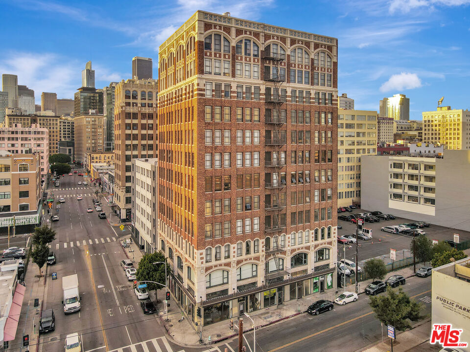 Welcome to this stunning, sun-filled Southwest-facing corner loft in the historic Textile Building, a Gothic Revival landmark designed by the architect behind Chateau Marmont. Reimagined as an urban oasis in 2005, this 6th-floor residence boasts only one shared wall, offering privacy and an abundance of natural light in the heart of DTLA's Fashion District. Spanning 1,010 square feet, this bright and airy loft features soaring ceilings, oversized windows, and an open floor plana dream canvas for flexible living. Currently configured as a spacious 1-bedroom, the unit is recorded as a 2-bedroom on public records, allowing for an oversized living area with the option to add a partition wall for an additional bedroom if desired. Polished concrete floors, original exposed brick, and designer lighting create a chic, industrial aesthetic, while the thoughtfully updated kitchen boasts a spacious island, abundant cabinetry, and newer appliances. The cozy bedroom nook includes a generous wardrobe, while the living area features additional storage behind stylish sliding mid-century sliding doors. The oversized bathroom invites relaxation with a deep soaking tub and shower combo, plus the convenience of an in-unit washer/dryer. Residents enjoy top-tier amenities, including a rooftop deck with panoramic city views, a sparkling pool and spa, BBQ areas, a 24-hour fitness center, a basketball court, and a dog-friendly outdoor space. This unit also includes secured garage parking and an extra storage unit. Best of all, this historically designated Mills Act building offers significant property tax savings. Located just steps from the B Line metro at Pershing Square and DTLA's best spots - the Flower Market, Whole Foods, Holy Basil, Anwar's Kitchen, and the legendary tacos at Sonoratown - this loft is the ideal mix of urban energy and homey comfort. Don't miss the chance to own a truly exceptional loft in one of DTLA's most iconic buildings!