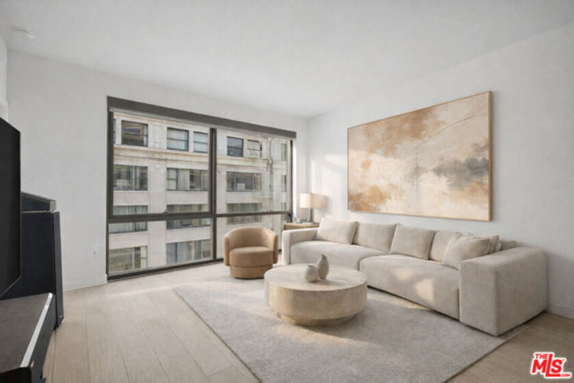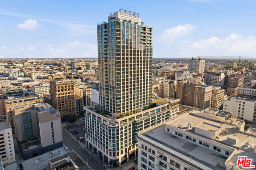 Perched above the storied Broadway corridor, The Perla Retreat, Residence 913 at Perla on Broadway delivers refined, hotel-inspired living in the heart of Downtown Los Angeles. Built in 2021 and rising 35 stories, Perla is a modern architectural statement that blends global design pedigree with the energy and culture of DTLA's historic theater district. This expansive one-bedroom, one-bath residence spans 919 square feet, offering a noticeably larger footprint than comparable homes currently on the market. Open-concept interiors are wrapped in European white oak flooring and filled with natural light, creating an airy, calming retreat above the city. Floor-to-ceiling windows frame dynamic skyline views stretching toward the Hollywood Hills, with distant ocean horizons visible on clear days. The kitchen and living areas flow seamlessly, ideal for both daily living and elegant entertaining. A generous primary bedroom features a spacious closet and custom motorized blackout shades for complete privacy and comfort. Additional highlights include a full-size Bosch washer and dryer, energy-efficient LED lighting, and pre-wiring for high-speed fiber optic connectivity. At the heart of the building is Perla's signature four-story indoor atrium, an architectural centerpiece inspired by Broadway's historic theaters and flooded with natural light. More than 44,000 square feet of amenities extend the living experience far beyond the residence, offering a true boutique hotel lifestyle. Residents enjoy an attended lobby and lounge, state-of-the-art fitness and yoga studios, private theater, library, and workspaces, meeting rooms, wine tasting room, private dining room, gaming lounge, and multiple indoor-outdoor entertaining areas. Outdoor spaces are equally impressive, including an 11th-floor pool terrace with spa, fire features, open lawn and pet run, as well as a spectacular 36th-floor rooftop terrace with cabanas, observation deck, and skyline views that stretch across Los Angeles. Additional conveniences include package services, private building access, high-speed Wi-Fi throughout amenity areas, bicycle storage, EV charging availability, and boutique ground-floor retail. Set moments from Grand Central Market, the Ace Hotel, world-class dining, arts, and transit, Perla offers a rare balance of urban access and residential tranquility. With a predominantly owner-occupied, design-conscious community and low effective density, the building maintains a calm, private atmosphere rarely found in Downtown living. Residence 913 presents an exceptional opportunity for an owner-user or international buyer seeking modern construction, elevated design, security, and space in one of Los Angeles' most culturally rich neighborhoods.