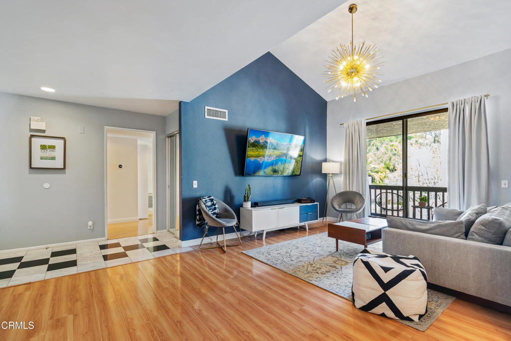 ONLY CASH OFFERS WILL BE ENTERTAINED. This property does not qualify for conventional financing.******Welcome to this charming top-floor condo in the picturesque Monterey Hills neighborhood of LA. As you step inside, you'll be greeted by a bright and open living space, featuring two-story vaulted ceilings. The space is perfect for both relaxing and entertaining, with a custom chandelier and sliding glass doors that lead to the rear patio. Just around the corner, there's a designated dining area and easy access to the galley kitchen. The kitchen offers plenty of storage, natural light, and two-tone cabinetry. Down the hall, you'll find a guest bathroom with a shower-over-tub combination, as well as in-unit laundry for added convenience. The guest bedroom has a large closet and floor-to-ceiling windows. The primary suite is a true retreat, featuring a large window that lets in the California sunshine, oversized closets, and a private ensuite bathroom with a standing shower and tasteful tile design. As a resident of Huntington Terrace, you'll have access to a variety of amenities, including a pool and spa, gym, walking trails with views of the hills, clubhouse access, and EV charging at your designated parking spot. Plus, you're just a short drive away from Highland Park, South Pasadena, Dodger Stadium, and all the attractions Los Angeles has to offer!