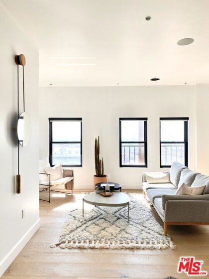 PENTHOUSE unit! Discover urban living at its finest in the heart of Downtown Los Angeles! This sleek and modern unit offers a thoughtfully designed space with an open layout, perfect for your city lifestyle. Perched at the top of the building, this exceptional penthouse showcases soaring ceilings that immediately set it apart from the rest. Expansive, double-height living areas create an airy, dramatic atmosphere, allowing natural light to pour in through oversized windows and enhancing the sense of scale throughout the home. Featuring beautiful laminate floors throughout, this home provides both style and functionality. The unit boasts a spacious, contemporary living area with large windows that pour in natural light, creating a bright and inviting atmosphere. The full bathroom is finished with modern touches, designed with relaxation in mind. A convenient washer and dryer are in-unit, making laundry day a breeze. For additional convenience, the building also offers a common laundry area. Nestled in the historic Spring Street corridor, this exceptional condo offers the ideal balance of comfort and vibrant city living. Don't miss the opportunity to own an incredible piece of Downtown LA! Best of all, this property qualifies for the Mills Act. The Mills Act allows owners to receive a potential property tax reduction that will help offset the costs of ownership.
