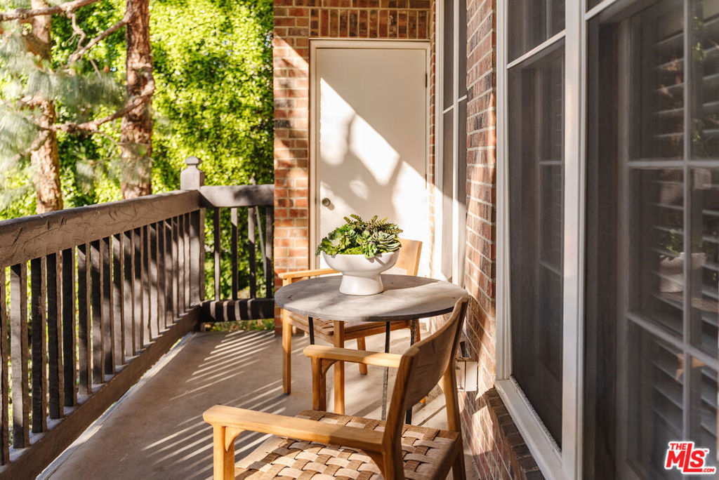 Experience elevated Brentwood living in this beautifully renovated, front-facing 2-bedroom, 2-bath residence, ideally situated in an intimate 9-unit building. Positioned with a desirable west-facing exposure, the home is filled with natural light and offers a serene, tree-lined outlook.A formal entry opens to a spacious, open-concept living and dining area defined by soaring ceilings, recently refinished wide-plank wood flooring, and a statement fireplace. Oversized glass door leads to a generous private balcony, creating a seamless indoor-outdoor flow ideal for both relaxed everyday living and effortless entertaining. Thoughtfully curated finishes and soft, layered textures evoke a timeless, understated elegance reminiscent of a classic Nancy Meyers aesthetic. The chef's kitchen is both refined and functional, featuring premium stainless steel appliances, custom cabinetry, and sleek quartz countertops, with open shelving that adds warmth and character.The expansive primary suite offers a true retreat, complete with a large walk-in closet and a spa-inspired bath with dual vanities and a frameless glass shower. A well-appointed secondary bedroom and full bath with tub provide flexibility for guests, office, or additional living space. Additional highlights include side-by-side parking in a gated garage and a boutique building setting that offers both privacy and exclusivity. Located moments from Brentwood's premier dining, shopping, and neighborhood parks, this residence delivers a rare blend of style, comfort, and walkable convenience in one of Los Angeles' most sought-after communities.