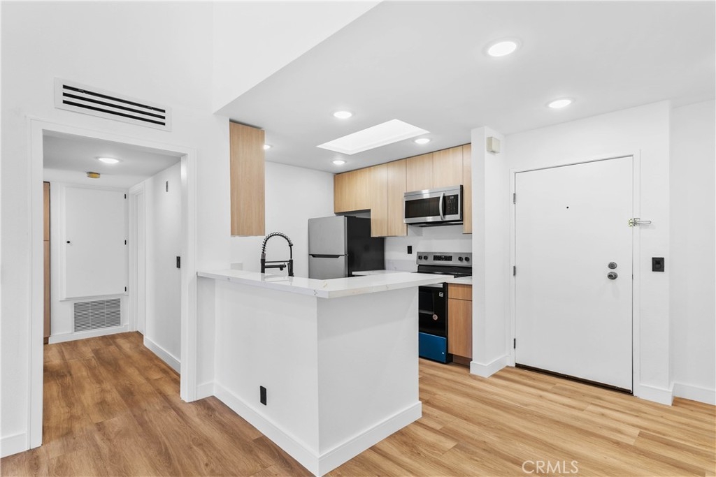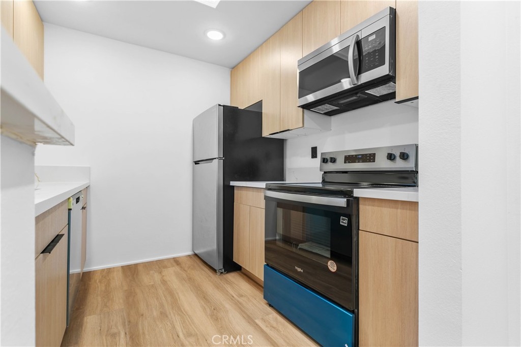 This beautifully remodeled top-floor one-bedroom condominium is nestled in the prestigious Catalina Terrace complex of Monterey Hills, minutes away to LA downtown or Pasadena easy access to 110 Freeway. Highlights include a spacious living room with a sliding glass door leading to a private balcony overlooking the tranquil lush garden and pool area, recessed lighting all over and a modern kitchen with stainless steel appliances and Quarts counters. The master bedroom boasts tall sliding mirrored closets and serene garden and pool views. Additional features include cathedral ceilings in the living room and master bedroom, a kitchen skylight, a generously sized balcony perfect for outdoor seating, central A/C and heating, secured entry, and gated underground parking with two side-by-side spaces. All remodeling including flooring & recessed lights are approved by HOA. Seller Financing Available!