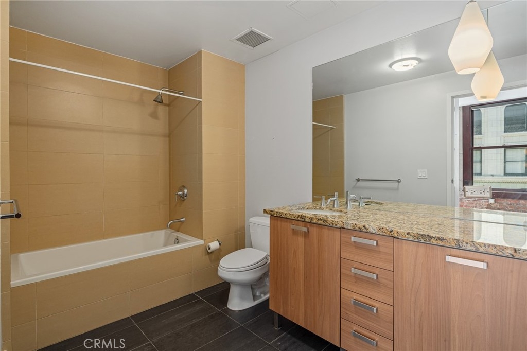 Live the best of DTLA life in this sleek 2-bathroom loft on Spring Street in the iconic Rowan building. This cool loft is one of the few units in the building to have an oversized 2-bedroom floorplan, on tax records, (which is currently set up as one big open loft space with one separated bedroom). The layout is such that the bedroom has been sectioned off as a separate room. It also features 10-foot ceilings, exposed brick walls, top of the line appliances and overlooks 5th Street. The large windows let in luscious amounts of light. The sleek kitchen is open to the living room. There’s a roomy bathroom with shower/tub combo en-suite with the private laundry area. Located in the Old Bank District in the booming Historic Core of Downtown LA, the Rowan was originally built in 1912 and exquisitely remodeled in 2008. Today’s residents enjoy a beautiful mix of historic building features and high-end modern conveniences. Historic features include exposed brick walls, original large windows with beautiful mahogany frames, historic marble flooring in the lobby and restored exterior façade. The Rowan is a full amenity building, including a 24-hour doorman, resident’s lounge, hot and cold plunge pools, outdoor BBQ area, dog run, on-site dry-cleaning valet and bike storage. All common areas are even WIFI-enabled. Parking is available to rent in the adjacent Old Bank District Garage, which is located directly behind the Rowan, and accessed via a partially gated alley.