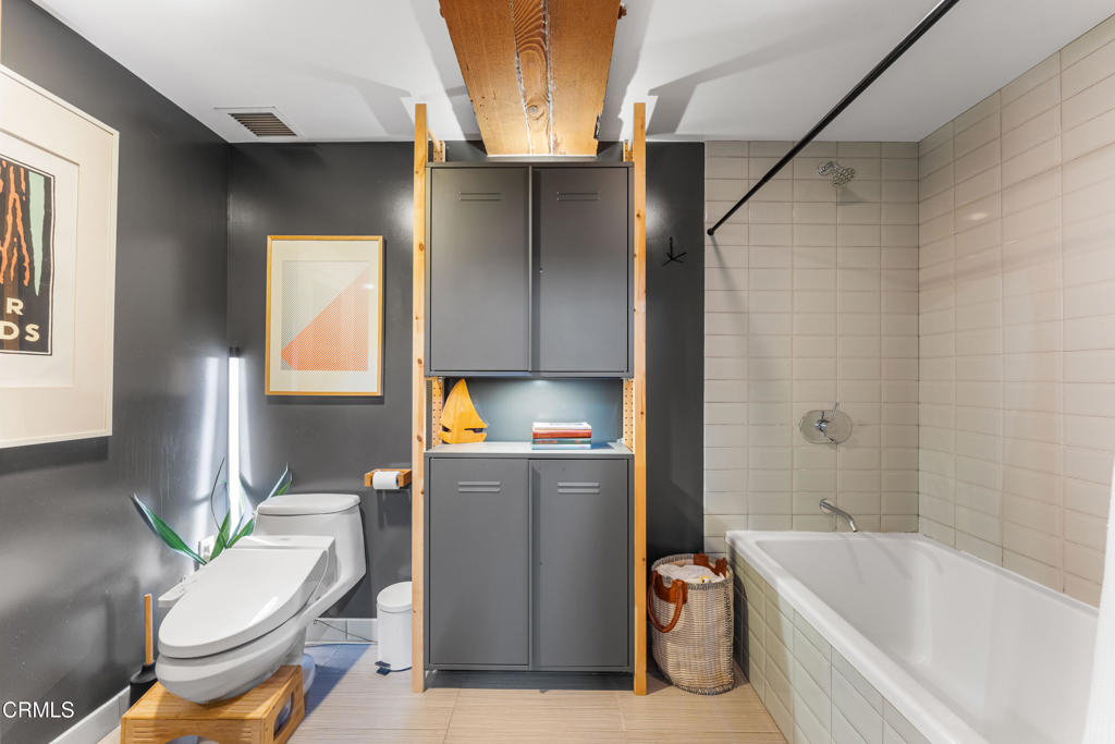 Experience vibrant living in one of the Arts District's most sought-after buildings: Barker Block. With a private balcony, this tranquil, open-style loft seamlessly blends historic character with modern updates, featuring original 1920s wood beam ceilings, exposed posts, and concrete-framed double-pane windows that flood the space with natural light. The spacious bath offers an oversized soaking tub, two storage cabinets, and in-unit laundry. A sleek gallery kitchen with stainless steel appliances opens into your versatile living space, perfect for entertaining or quiet nights in. Enjoy resort-style amenities, including a newly updated rooftop with a heated pool, spa, cabanas, BBQs, fire pits, a fitness center, and views of DTLA and beyond. Gated garage parking and 24/7 on-site security provide peace of mind. Step outside to renowned Arts District destinations: Bavel, Girl & the Goat, Manuela, Verve, Blue Bottle, Hauser & Wirth, The SoHo Warehouse, and more. With easy access to Metro, train stations, and major freeways, this location offers both energy and convenience in the heart of downtown LA. Come see why living at Barker Block is the ultimate Arts District lifestyle.
