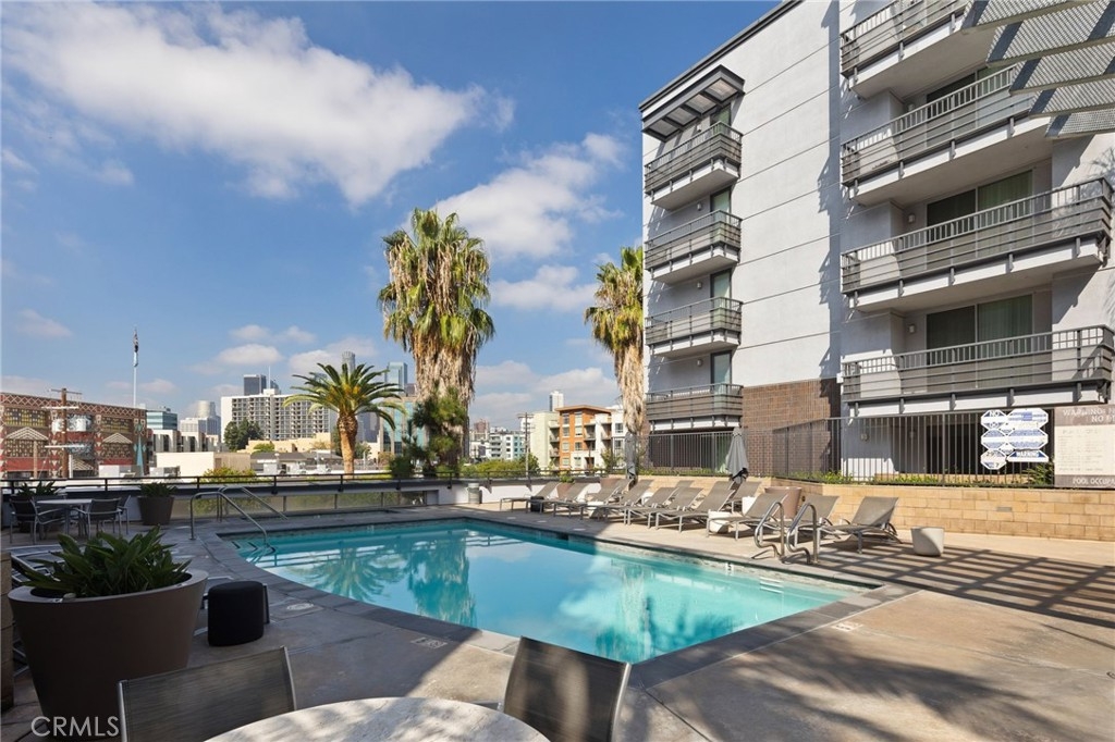 AMAZINGLY comfortable 2-bed & 2-bath condo with loft in the famous Mura building of Arts District living with high ceilings, open loft layout, and low HOA for this area in the best part of DTLA. This two-story unit lends modern finishes and industrial flair with new flooring, large windows, and an open layout flood the space with light. Kitchen features stainless appliances, granite counters, and a custom island with dual beverage fridges. Bedrooms on each level include walk-in closets; the upstairs primary offers a private bath with dual sinks. Loft works as an office, studio, or extra lounge. Extras: in-unit laundry, two-zone HVAC, private balcony, and 2 SIDE-by-SIDE assigned parking spots. Building amenities include 24-hour security, fitness center, pool, spa, and outdoor lounge with fireplace and BBQ. Close to popular restaurants, cafés, shops, the Metro Gold Line, Hauser & Wirth, Zinc, and Little Tokyo.