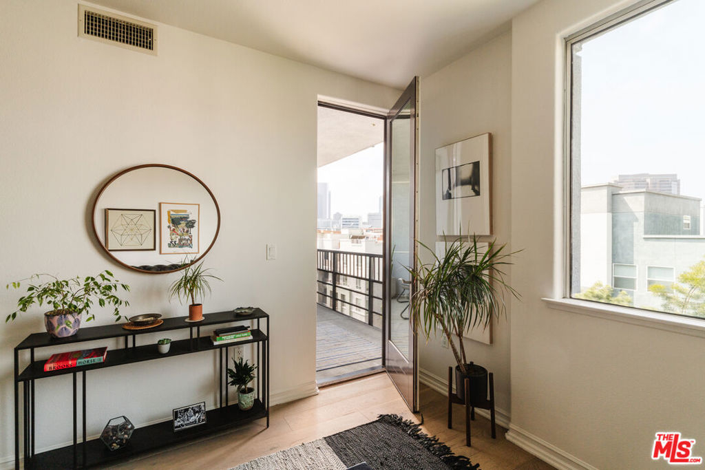 Live at the center of LA's most creative and dynamic neighborhood, the Arts District. The area that has transformed into a cultural epicenter filled with Michelin-starred restaurants, contemporary art galleries, boutique coffee roasters, design studios, and fashion-forward retailers. Just outside your door: Bestia, Cha Cha Cha, Hauser & Wirth, Soho Warehouse, Zinc Cafe, and countless other fixtures of Downtown's vibrant, walkable core. Located at 629 Traction Ave, this rare one-bedroom, one-bath residence sits within Mura, an award-winning modern complex that blends urban sophistication with resort-style amenities. Inside, the open-concept layout offers effortless flow between kitchen, dining, and living areas, while sliding doors in both the living room and bedroom open to a private patio with expansive views of the LA skyline. The bedroom features a generous walk-in closet and direct patio access. Additional highlights include in-unit laundry, central heat and air, high-end stainless steel appliances, and freshly painted cabinetry. Unlike most units in the neighborhood, this home comes with two secure parking spaces and an oversized private storage room on the same floor - ideal for gear, bikes, or anything city living typically forces you to give up. The Mura offers 24/7 gated security, a front desk attendant, a pool and spa, modern fitness center, guest parking, and lush courtyards with BBQ grills and an outdoor fireplace. If you're looking for more than just a home. this is something that puts you in the middle of LA's most exciting food, art, and nightlife scene 629 Traction Ave delivers the full Arts District experience.