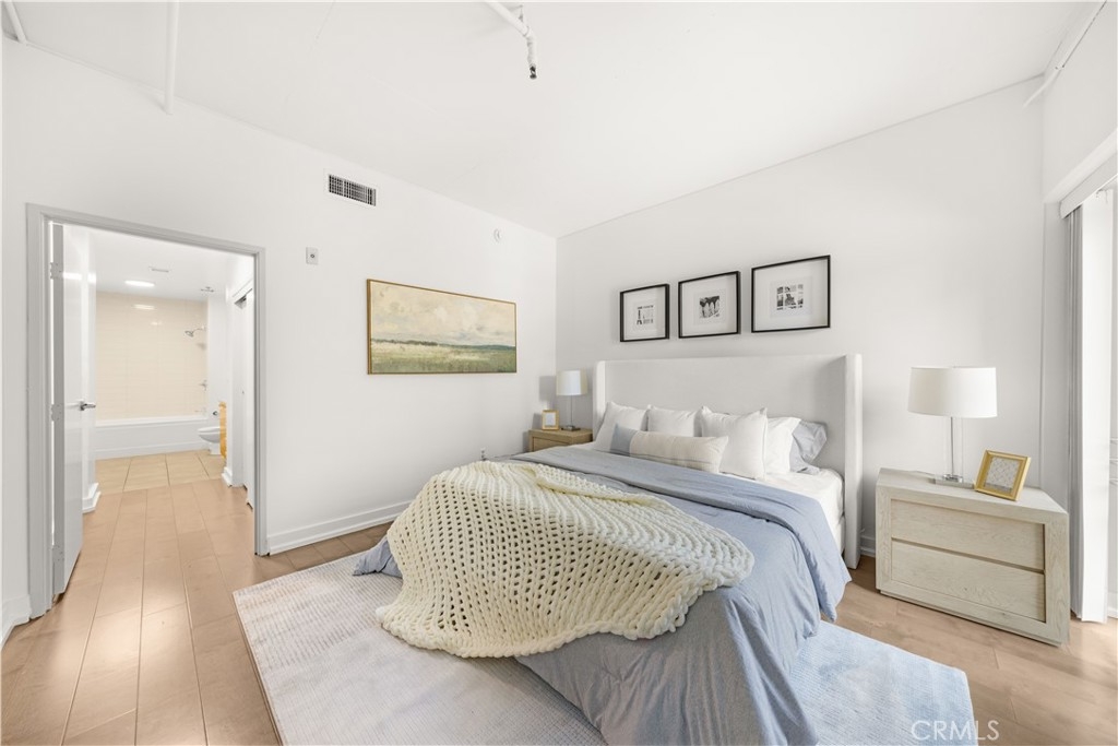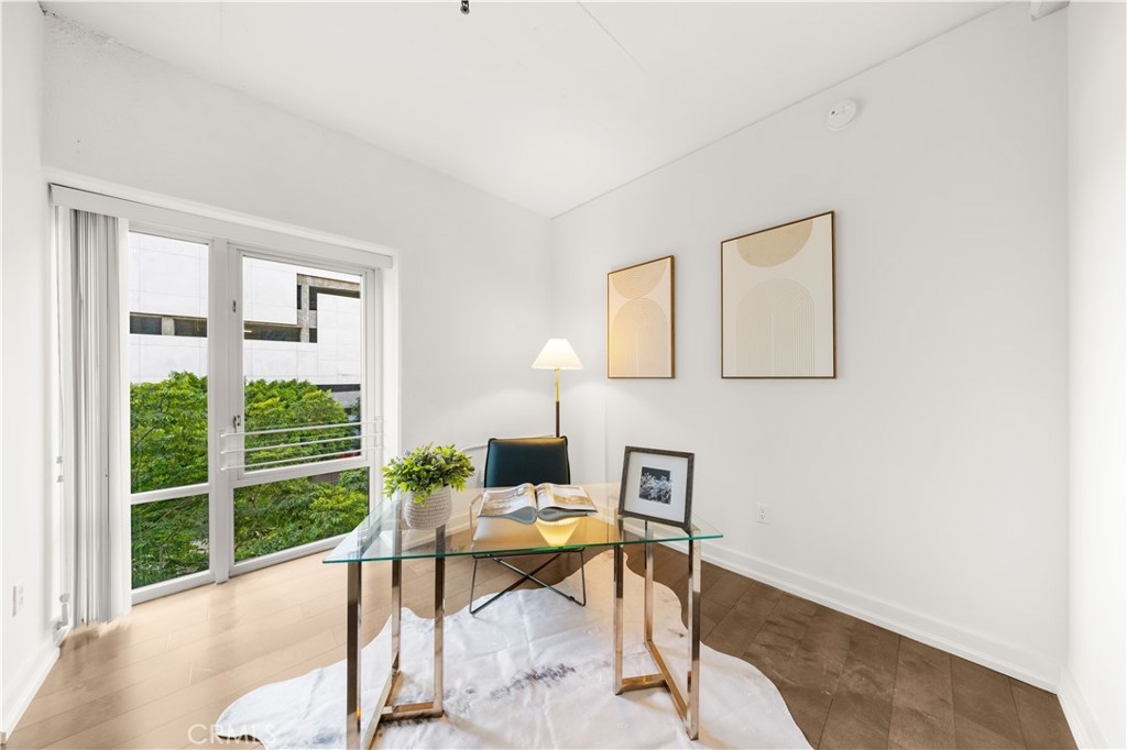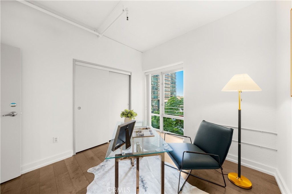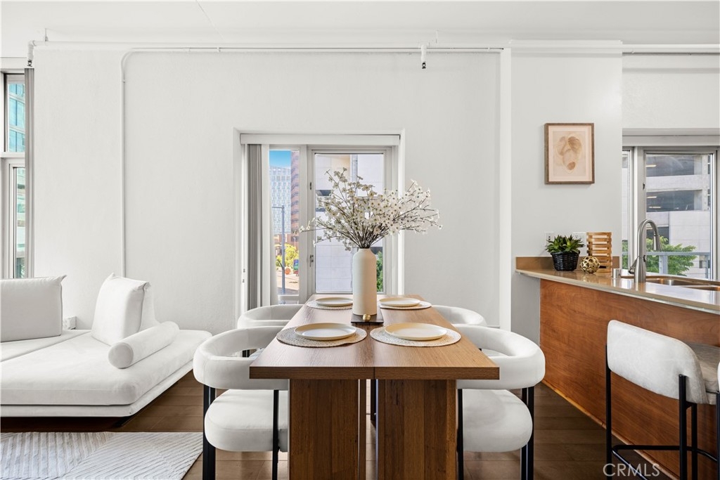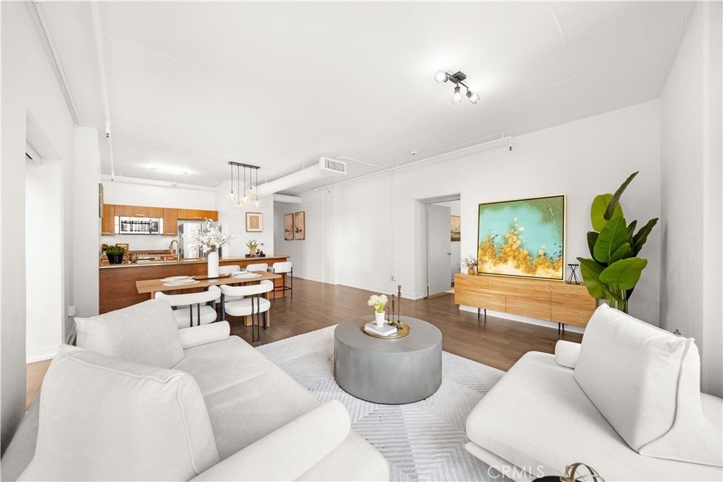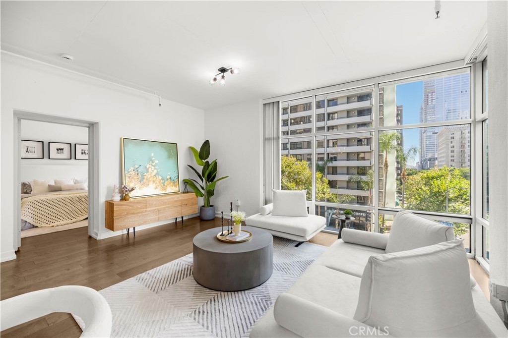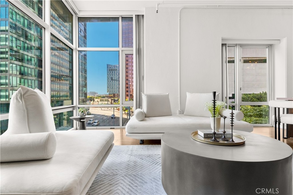 This amazing rare corner residence offers expansive southwest-facing floor-to-ceiling windows that flood the home with natural light. The elegant interior features wide-plank hardwood flooring throughout, an open-concept layout, and a sleek kitchen appointed with Ceaserstone quartz countertops, a Whirlpool five-burner gas range, stainless steel appliances, and in-unit washer/dryer. 2 generously sized, gated side-by-side parking spaces are included. Market Lofts provides 24-hour concierge service, ensuring security and seamless package and delivery management. Amenities include a resort-style pool, 20-seat private screening room, fitness center, clubhouse, and BBQ area. Ground-level conveniences include Ralph’s, Coffee Bean, and more. Ideally located within walking distance to Whole Foods, LA Live, The Bloc, fine dining, and upscale retail. Experience refined urban living in the heart of Downtown LA.