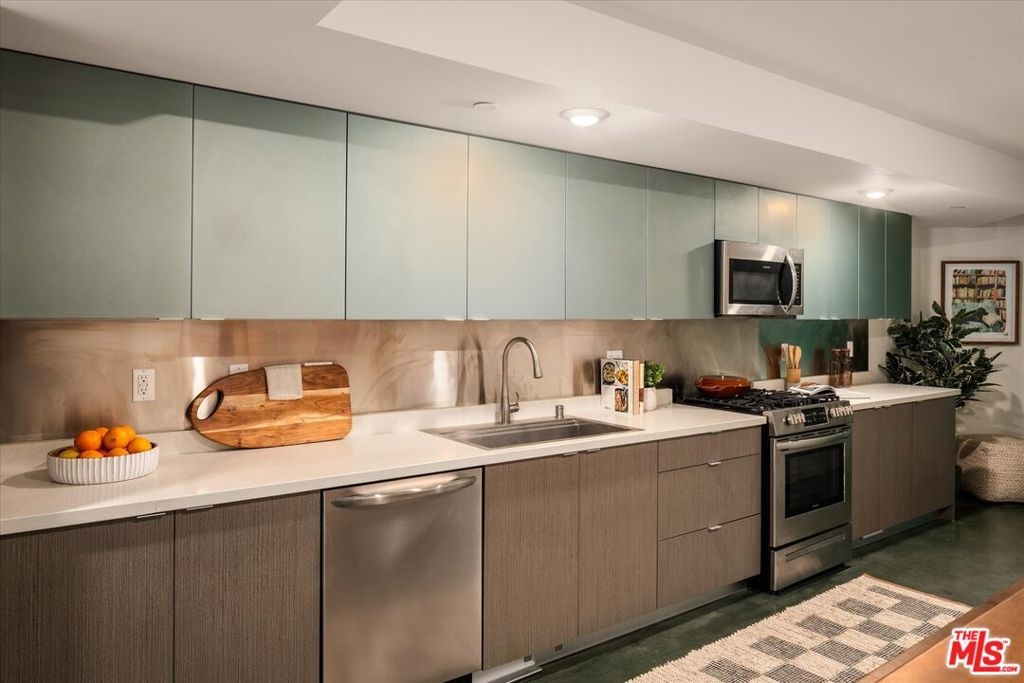 Discover exceptional value at the Cha Cha Cha, Virgil Village's most recent condominium development, where a limited-time $20,000 grant awaits qualified buyers. This sophisticated 2019-built residence offers three bedrooms and two-and-a-half bathrooms in an artfully designed space that harmonizes industrial elements with modern comfort. The open-concept layout boasts polished concrete and wood floors, soaring ceilings in a living area with private patio access via sliding glass doors, a top-to-bottom floating staircase, and an abundance of natural light throughout. The kitchen, equipped with stainless steel appliances and ample cabinetry, is adjacent to a dining area that is perfect for entertaining. The generous primary suite features high ceilings and a luxurious en-suite bathroom with a tub-shower combination. Upstairs, find a versatile loft-bedroom ideal for various lifestyle needs from home office to creative studio. The thoughtful floor plan includes an additional guest bedroom, full hallway bathroom, convenient powder room, and in-unit laundry. Enjoy resort-style amenities: a stunning outdoor pool with panoramic views, inviting BBQ area, a, gated guest parking lot, and comprehensive fitness center. Practical conveniences include two secured parking spaces with EV charging capability and a dedicated storage unit. Moments away, enjoy renowned spots like Budonoki Izakaya (recently recognized in Esquire's 2024 Best New Restaurants), Erewhon, Courage Bagels, Melody Wine Bar, VooDoo Vin, KinKan, and Good Friend Coffee. A stone's throw away from Sunset Junction and short commute to both Hollywood and Downtown LA. Explore this extraordinary opportunity and learn how to qualify for the exclusive $20,000 grant program!