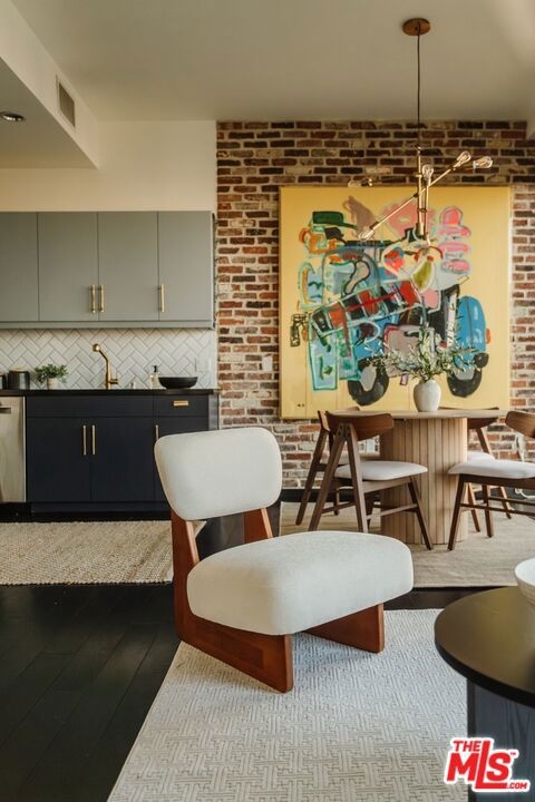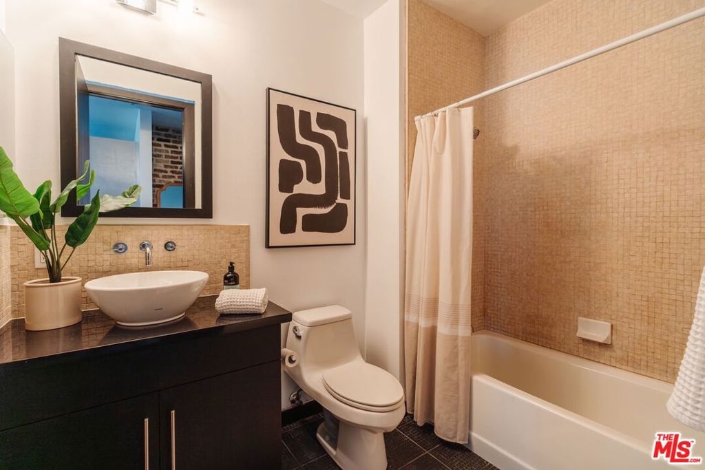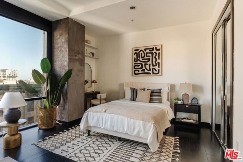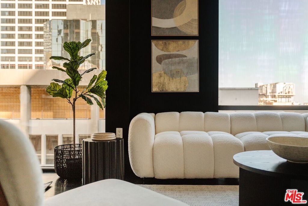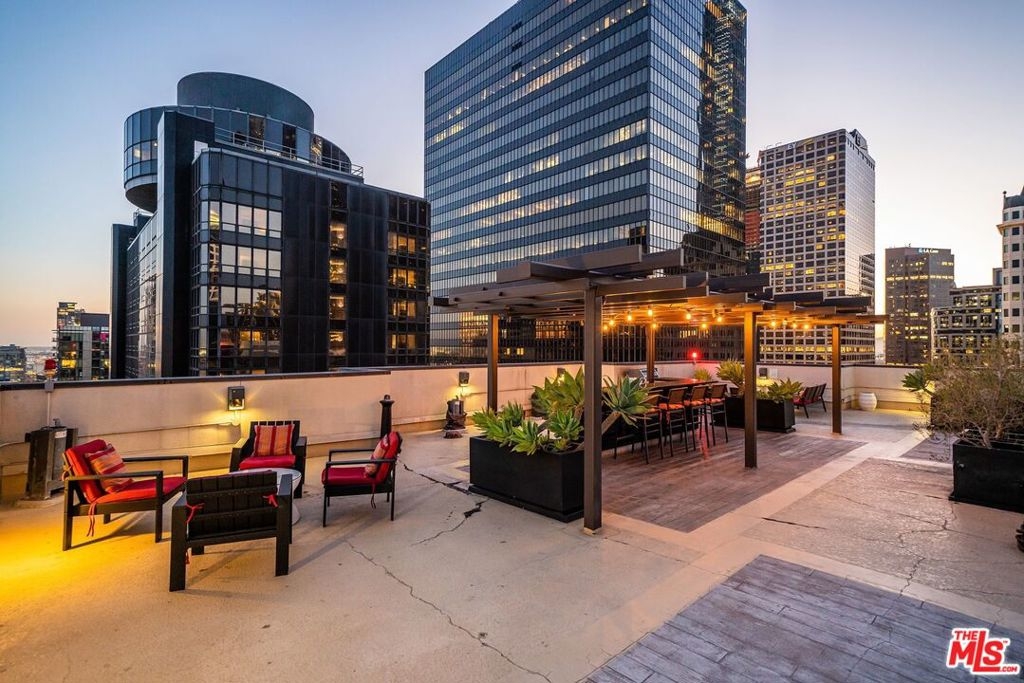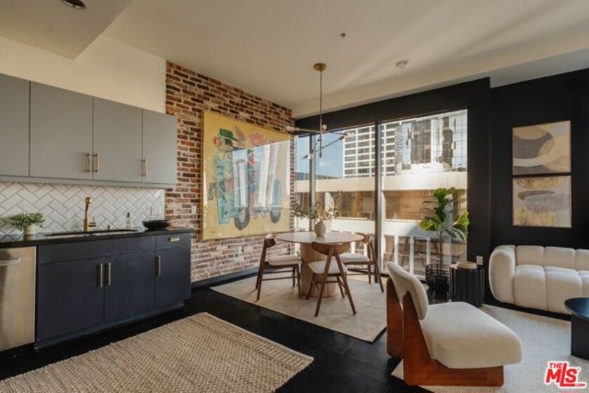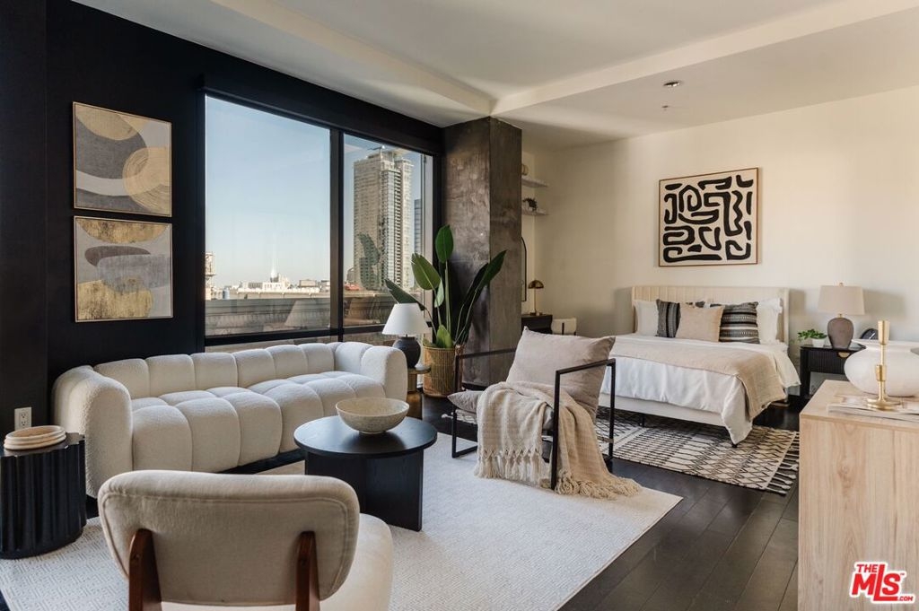 Nestled high on the 14th floor, the highly desirable end unit is a harmonious blend of modern elegance and urban sophistication. True urban dwelling with views of the bustling city down below. The open floor plan loft boasts floor-to-ceiling glass walls, tall gallery walls, 12-foot ceilings and warm dark hardwood floors. 2 unique brick accent walls and an East facing wall painted black. Natural light emanates throughout. The sleek kitchen features blue color cabinetry, white backsplash, granite countertops, stainless steel appliances and a new Bosch dishwasher. The bathroom features a soaking tub. Washer/dryer are included! 1 unassigned parking space included in the parking garage - exclusive to the Hope Street Lofts, with an elevator bank giving direct access to the 11th floor as well as the lobby. Hope Street Lofts is a boutique art deco condo building with only 80-units. Building amenities include 24/7 security, front desk concierge, a fitness center, gameroom, a rooftop with panoramic Downtown views, a helicopter pad, sundeck, barbecue grills and a chic wet bar. The rooftop was recently redone and new furniture has been ordered. The HOA fee covers water, trash, gas, sewage, 24/7 security and maintenance of the common areas. Located in the Financial District and directly above the 7th Street Metro Station. Access the best of urban dwelling at your doorsteps! Enjoy the best of food and beverages at the trendy Javiers or Bottega Louie. Near michelin star restaurants, world class museums, concept coffee shops and endless entertainment options. Across the street from the Bloc and Joeys. Only 2 blocks from Whole Foods and the Broad Museum is a stone's throw away. Experience a night at the LA Opera or a concert at the Walt Disney Concert Hall - only 4 minutes away. Attend a Lakers game at Crypto Arena. Entertain family and friends at LA Live. Easy access to freeways and public transportation. Truly, the best location in Downtown L.A.