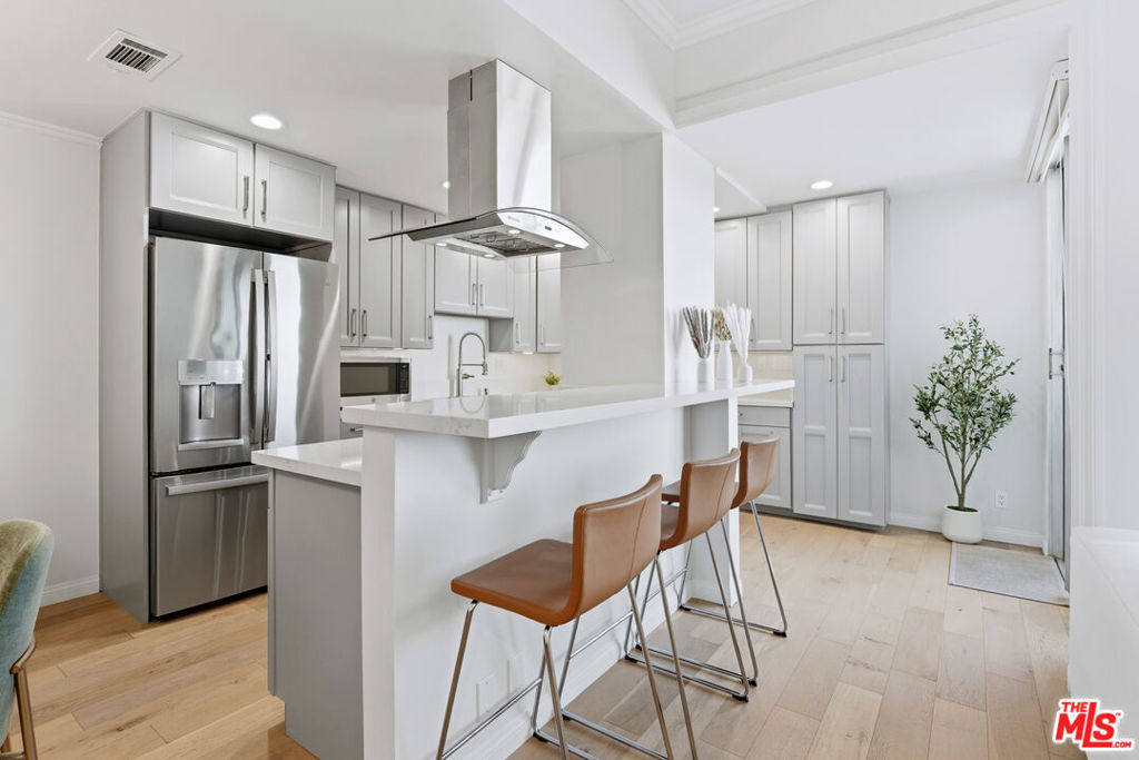 Welcome home to this extensively remodeled, 1 bedroom condominium located in the coveted Franklin Towers. With an open floorpan and modern design, features include custom kitchen cabinetry with quartz countertops and a premium GE Profile appliance package with dedicated dry bar with wine fridge. Floor-to-ceiling glass panels creating a light-filled, open floor plan afford sweeping, panoramic views of the Hollywood Hills, Griffith Observatory, Hollywood, and the Los Angeles skyline from the unit. Seamless indoor-outdoor flow to an expansive private, tiled balcony ideal for outdoor dining, barbecuing, and lounging. Additional features include recessed lighting, central HVAC with Nest thermostat, custom shades and curtains with hardwood floors throughout. Fully remodeled bathroom with quartz countertops, rainfall showerhead, floating mirrors, and matching designer fixtures. Extensive built-in storage, including a walk-in closet with Bosch in-unit washer and dryer. Full-service, prestigious Franklin Towers with white-glove amenities, including 24/7 concierge and on-site valet. Heated lap pool, hot tub, spa, sauna, dog run as well as rooftop gym, residents' clubhouse and expansive rooftop sun deck with 360-degree views from cityscape to ocean. Prime Hollywood location, minutes from Runyon Canyon, Sunset Strip, and Hollywood Blvd including Dolby Theatre, TCL Grauman's Chinese Theatre, and the Roosevelt Hotel with immediate access to world-class dining, nightlife, and entertainment.