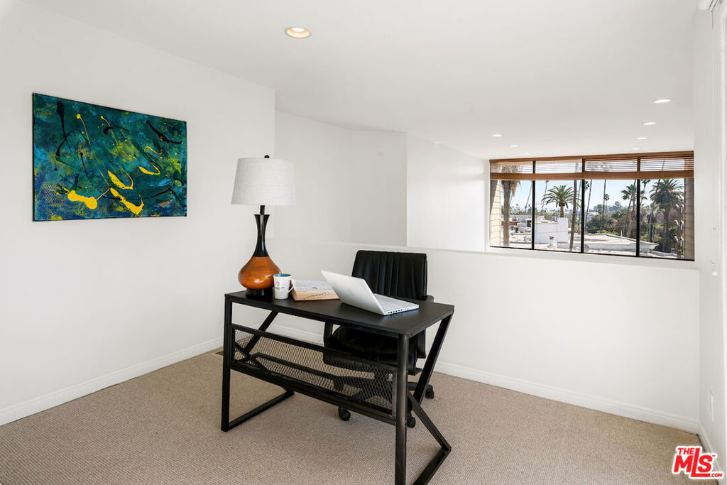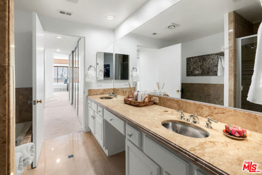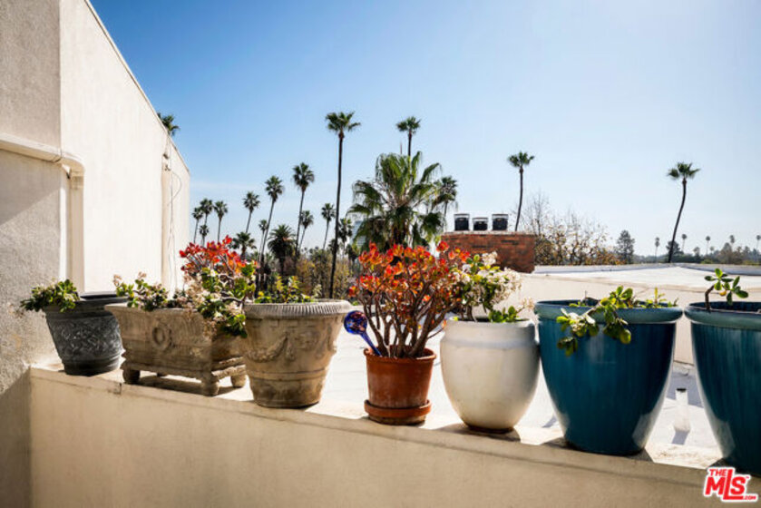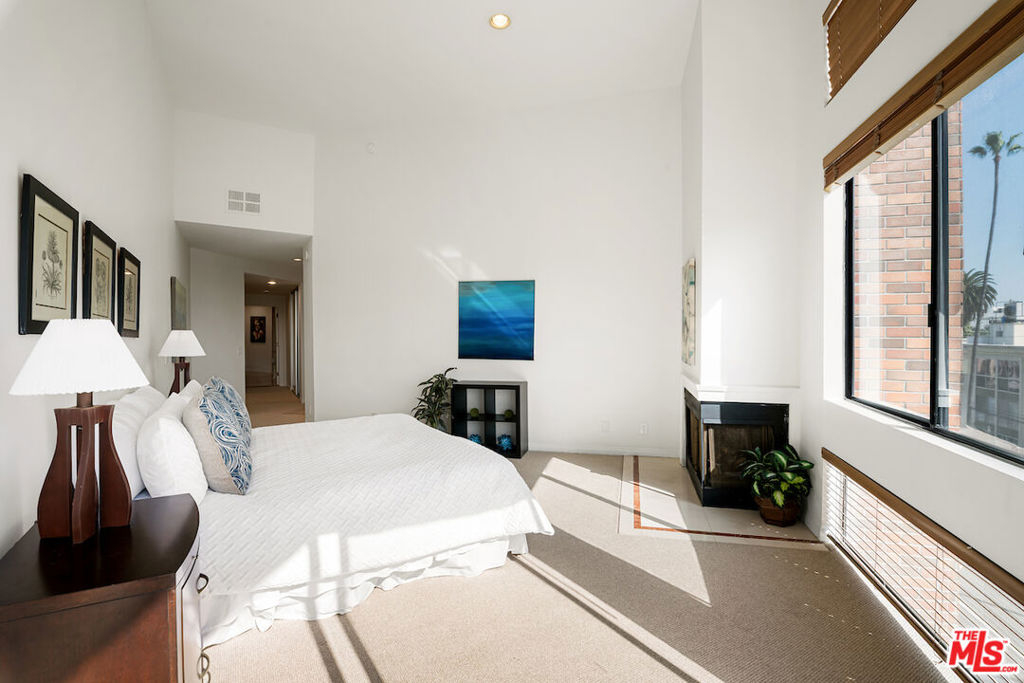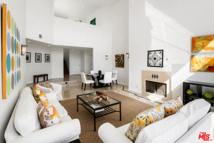 Brentwood's Premier Corner Penthouse! 2 Bedrooms + Loft + 2.5 Baths with approx. 1800 sqft. Dramatic Two-Story living room with floor to ceiling windows. This South facing unit is infused with natural light throughout. Tastefully laid marble flooring with deep emerald accents. Spacious floor plan that expands to an outdoor patio with palm tree views and a sleek marble fireplace provides a dramatic architectural focal point. Beautifully redone Chefs Kitchen with stainless steel appliances and wine fridge. Theres an Intimate breakfast alcove that opens to the balcony for your perfect sunrise coffee. Dedicated laundry closet features a full sized side by side washer/dryer. Primary suite retreat offers a sense of immense scale with double-height ceilings and is also anchored by a fireplace and second private terrace. Expertly curated wardrobe gallery provides an expansive dressing area with stone infused primary bath with separate shower and soaking tub. Ample counter space and a dual sink vanity anchors the primary bath. Graciously proportioned second bedroom suite features its own private bath. Upper-Level loft with ocean views is a master work of indoor-outdoor living with a fireplace. Secluded rooftop deck offering unparalleled vistas of Brentwood's urban landscape. Building amenities include controlled access, indoor pool, spa, sauna and gym. The Bundy Brentana Condominiums is a 24 unit condo complex built in 1983. Two car side by side parking plus guest spots. Enjoy immediate proximity to renowned San Vicente Bistros and Boutiques. Close to UCLA, Santa Monica, Century City and the beach.There is a special assessment for $235. For 18 months only.