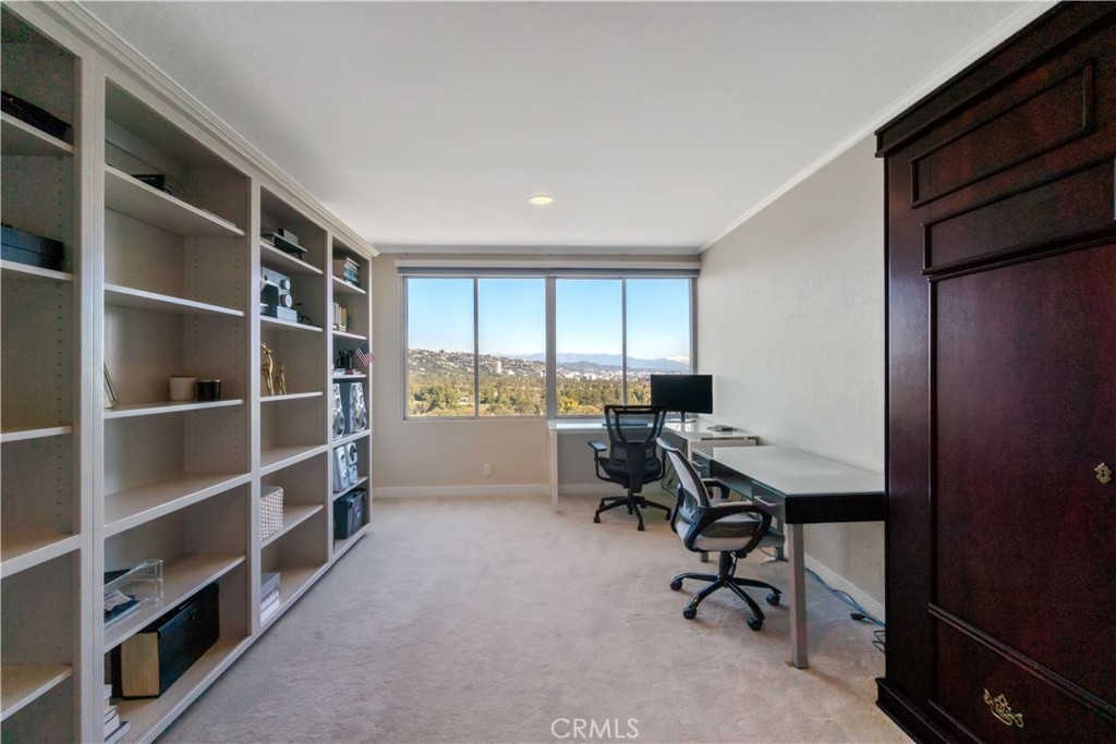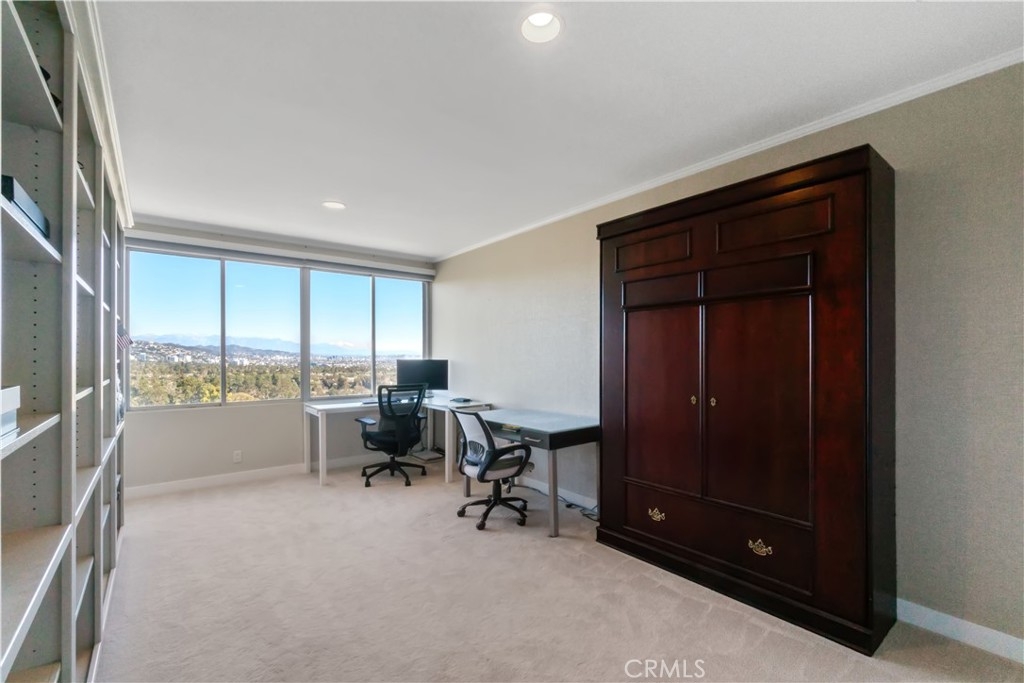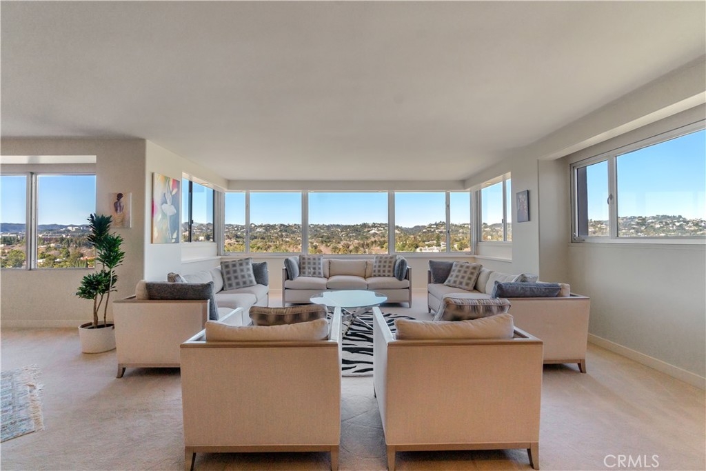 Sophisticated Luxury Living overlooking the Los Angeles Country Club! Experience refined elegance and panoramic views in this stunning 2-bedroom, 2-bath condominium overlooking the pristine greens of the Los Angeles Country Club North. Situated on the 16th floor and facing away from Wilshire, this home is located on the quiet side of the building and offers sweeping vistas from every room. Uninterrupted views stretch across the Getty hillsides, Bel-Air and Holmby Hills, to Hollywood Hills and Downtown. Spanning 2,110 square feet, this expansive residence features an open-concept layout designed for both grand entertaining and comfortable everyday living. The entryway boasts sleek cove lighting adding a contemporary touch and highlighting the home's architectural details. Expansive windows flood the interior with natural light by day and stunning sunsets by evening. The large custom kitchen with a grand center island is a true showpiece, featuring exquisite birdseye maple cabinetry and matching granite countertop. The primary suite offers a serene retreat with custom dark wood closets and a marble-clad steam shower that evokes a spa-like atmosphere. The second bedroom and bath mirror the same high level of craftsmanship and design. A separate walk in laundry room offers ample closet space and storage. Additional highlights include custom lighting and CAT-6 wiring throughout the home. Every detail has been thoughtfully curated to create a timeless, sophisticated aesthetic. Located moments from Beverly Hills, Century City, and Westwood, this residence combines privacy, prestige, and unmatched views in one of Los Angeles’ most coveted settings.