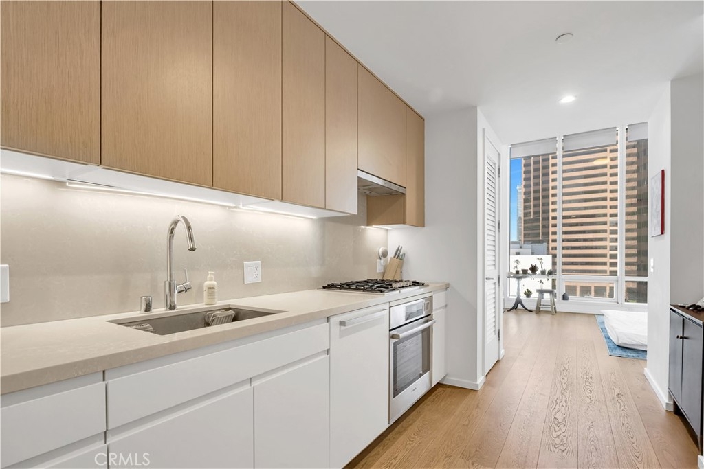 Experience urban luxury at its finest in this stunning studio condo featuring breathtaking city views that showcase the dynamic energy of downtown Los Angeles. This thoughtfully designed space maximizes every square foot with an open-concept layout, floor-to-ceiling windows that flood the unit with natural light, and panoramic views. Step beyond your front door into a world of resort-style amenities including a sparkling pool with city views, state-of-the-art fitness center and steam room, private movie theater, and putting green. The building also features a fully equipped outdoor kitchen perfect for entertaining, dedicated children's playground, off-leash dog run for your four-legged family members, elegant community room for gatherings and co-working, plus 24/7 security for complete peace of mind. Located in the heart of downtown LA's cultural renaissance, you'll be steps away from LA Live, world-class dining, entertainment, shopping, and business districts, with easy access to major freeways and public transportation. This is more than just a home – it's your gateway to the sophisticated urban lifestyle you've been seeking, representing the perfect blend of luxury, convenience, and community living in one of the city's most vibrant neighborhoods.
