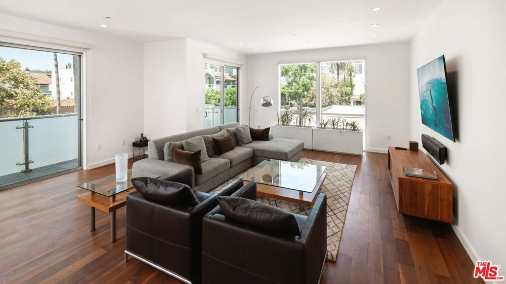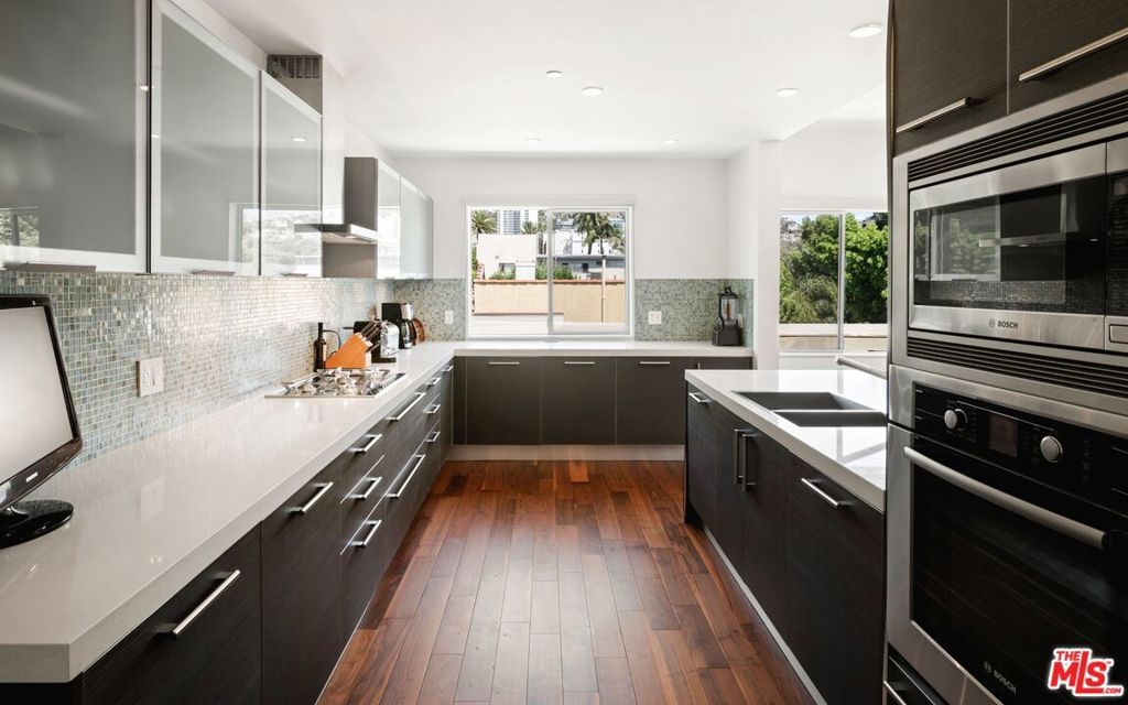Stunning front-facing corner penthouse at the exclusive Luminaire in West Hollywood. This approx. 2,053SF, 2BD, 3BA light-filled unit features soaring ceilings, expansive windows, and a private balcony for seamless indoor-outdoor living. Walnut floors and custom designer shelving elevate the open floor plan, while the gourmet kitchen boasts Italian Bontempi cabinetry, Caesarstone counters, Bisazza tile, a Smeg 5-burner range, Bosch ovens, paneled refrigerator, and breakfast bar. The primary suite offers a walk-in closet and spa-like bath with Blu Bathworks sinks and Zuma soaking tub. Additional features include a guest suite, powder room, in-unit laundry, and two parking spaces with six guest spots in a controlled-access garage. Residents enjoy video intercom entry and a rooftop deck with sweeping 360-degree views of the city and Hollywood Hills. Modern comfort and design in the heart of West Hollywood, just moments from the best of West Hollywood's dining, shopping, and nightlife.